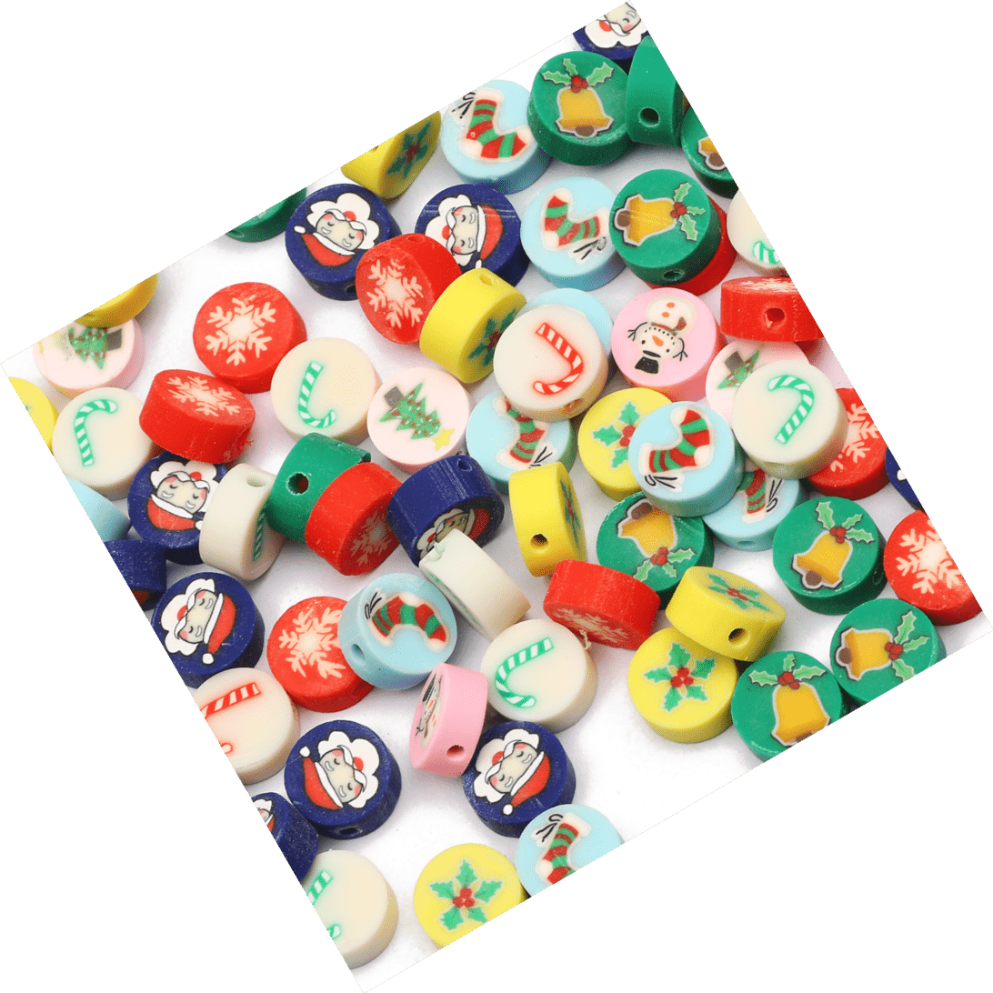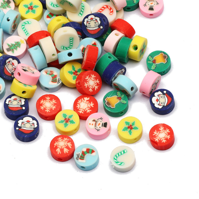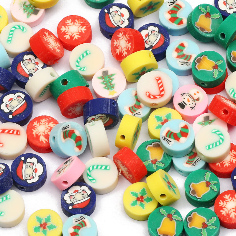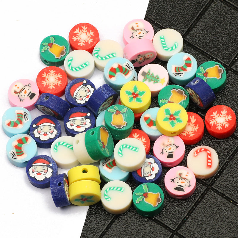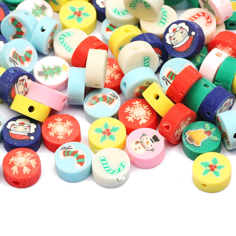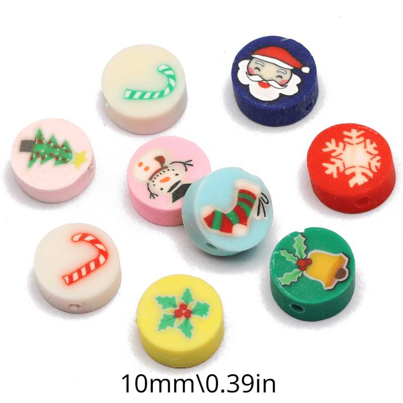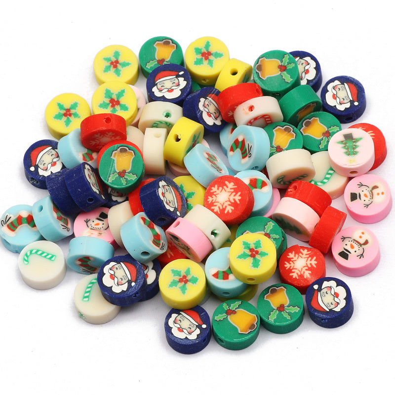These polymer clay beads are perfect for creating festive Christmas-themed jewelry. Each pack includes 50 mixed style flat round beads, ideal for making necklaces, bracelets, and other accessories.