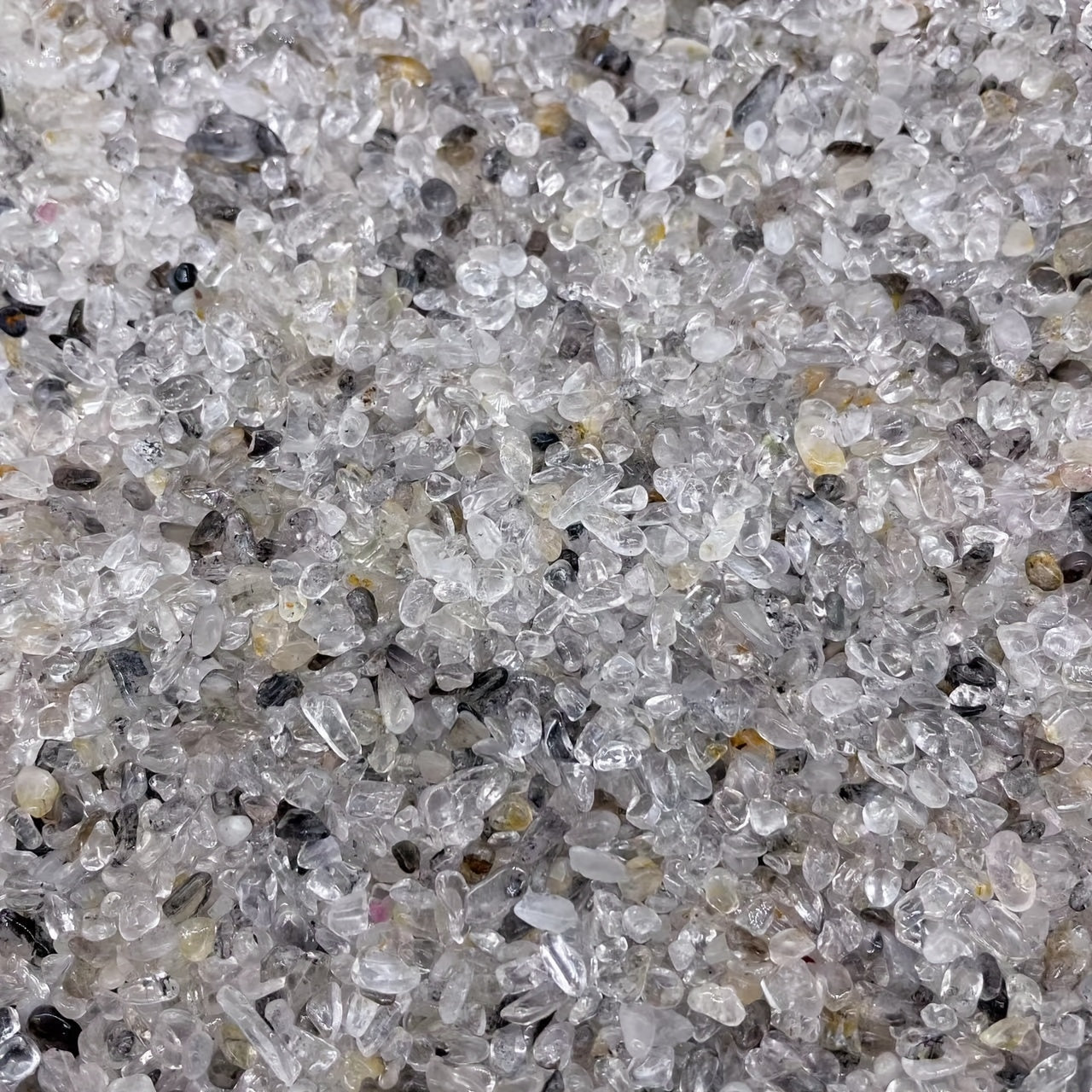 Enhance your crystal collection with this 50g bag of natural Herkimer crushed stones. These irregular shaped quartz crystals are perfect for healing, chakra balancing, and energy work. Use them for crafting, jewelry making, or simply display them in your space for their beauty and energy.
