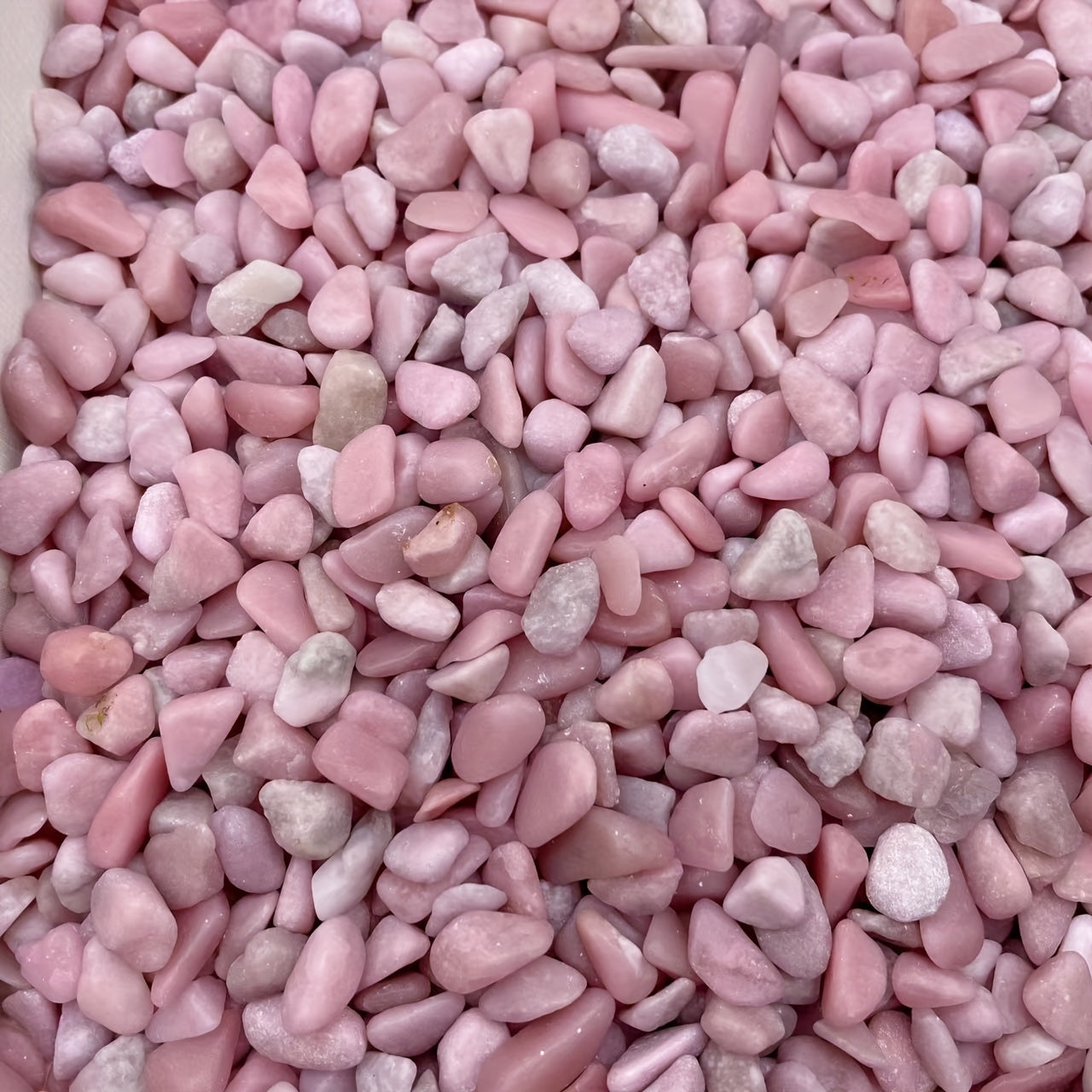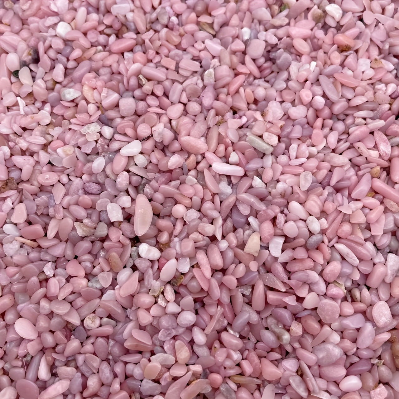 Enhance your crystal collection with this 50g bag of natural pink opal chips. These irregular shaped gemstones are perfect for healing, meditation, and decoration.