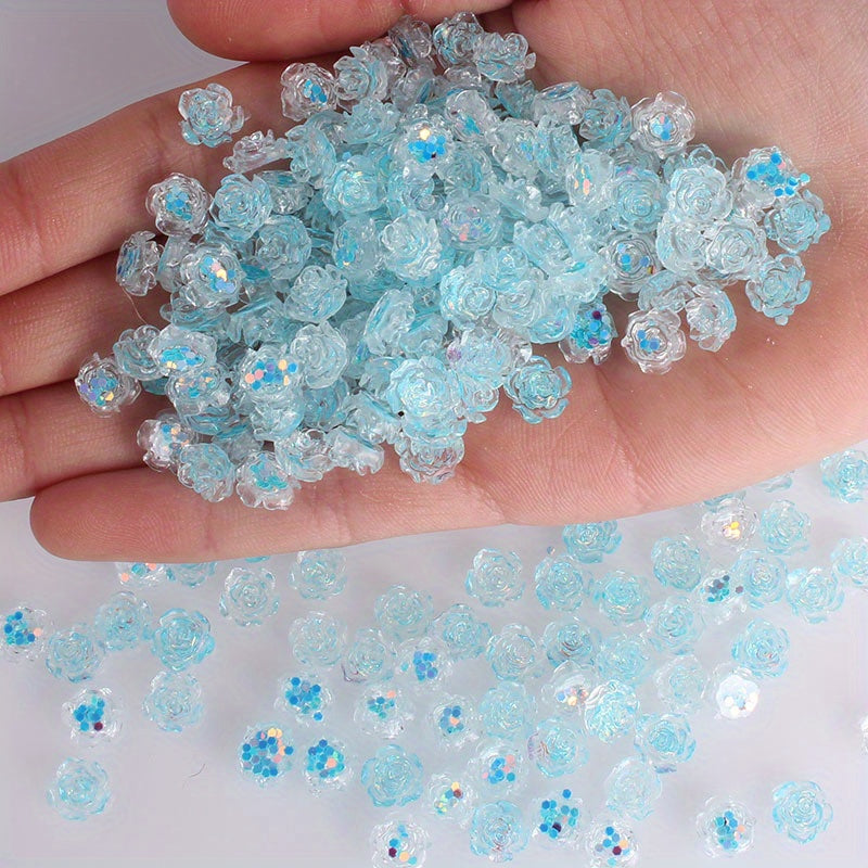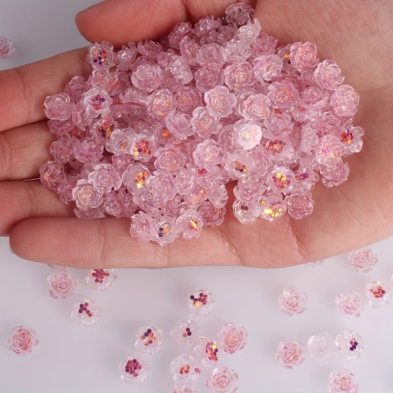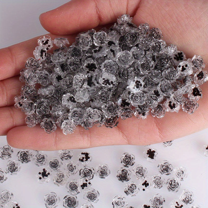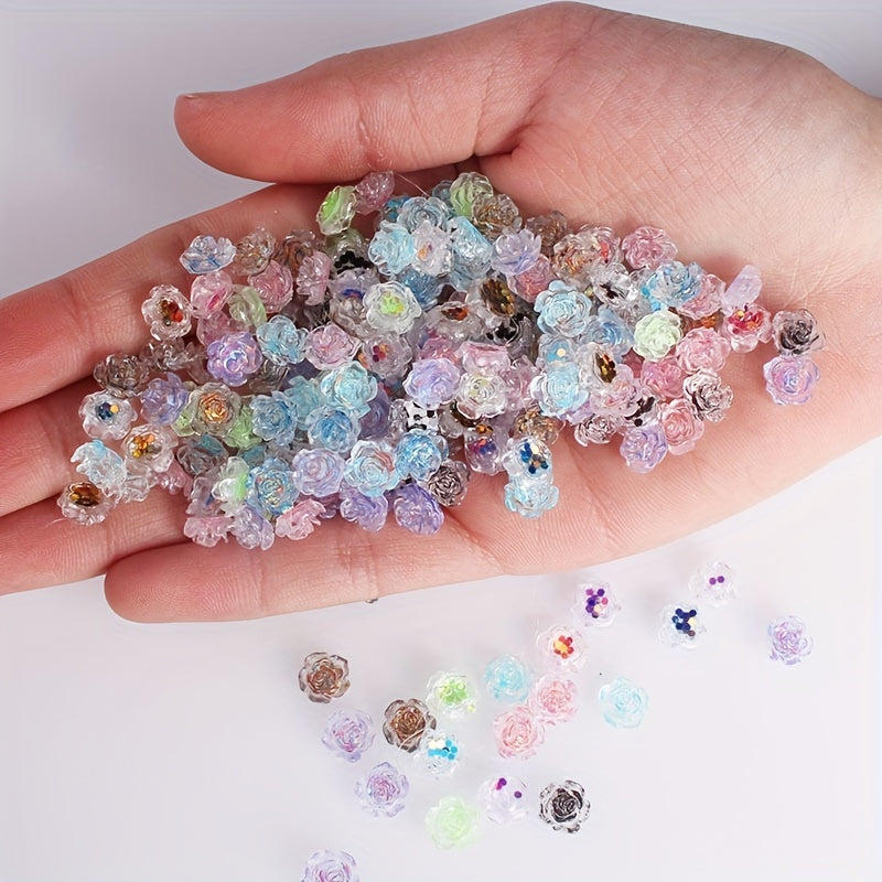Enhance your creativity with these vibrant rose flower beads perfect for making jewelry, nail art, mobile phone case decoration and more. Each pack contains 50 colorful transparent beads.