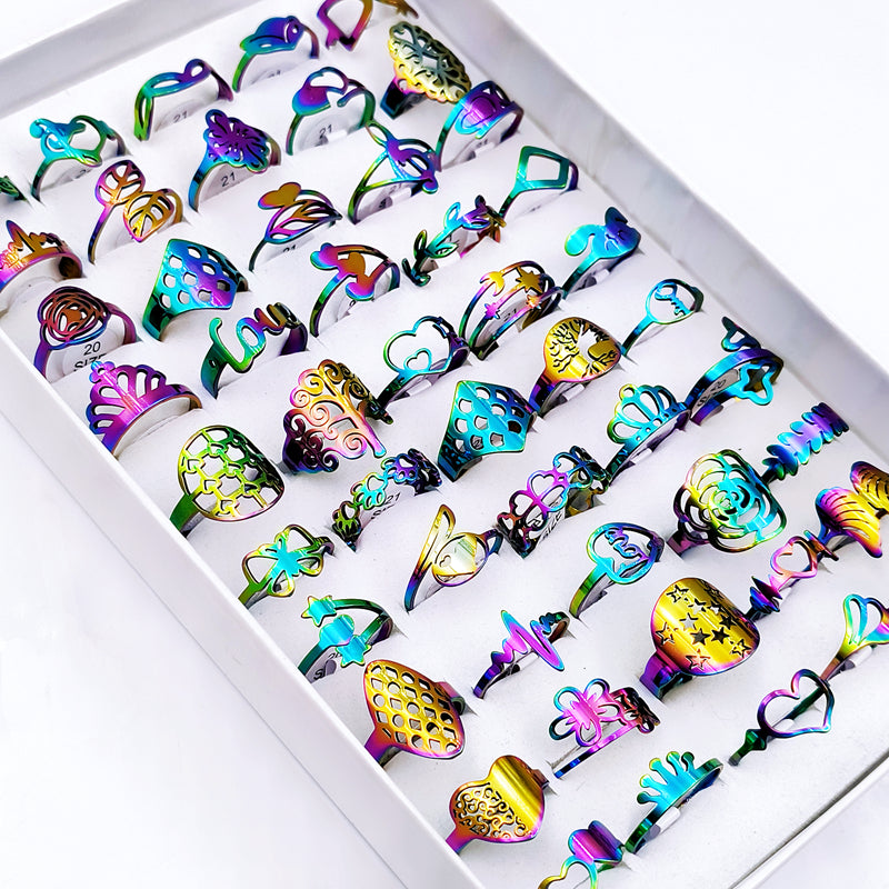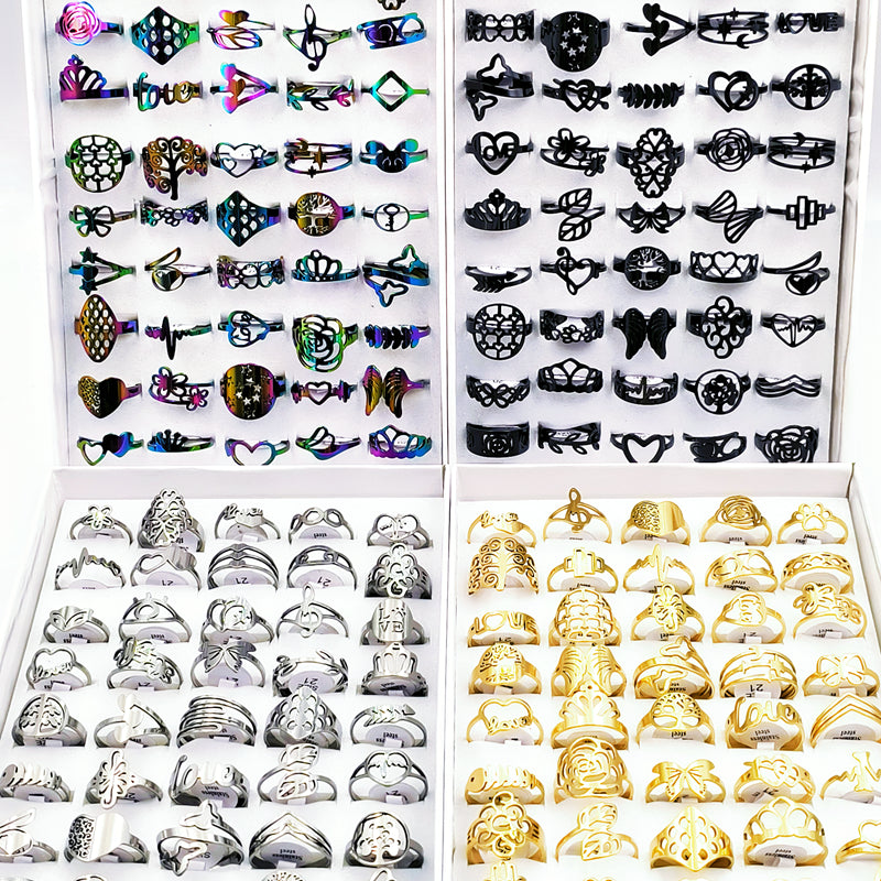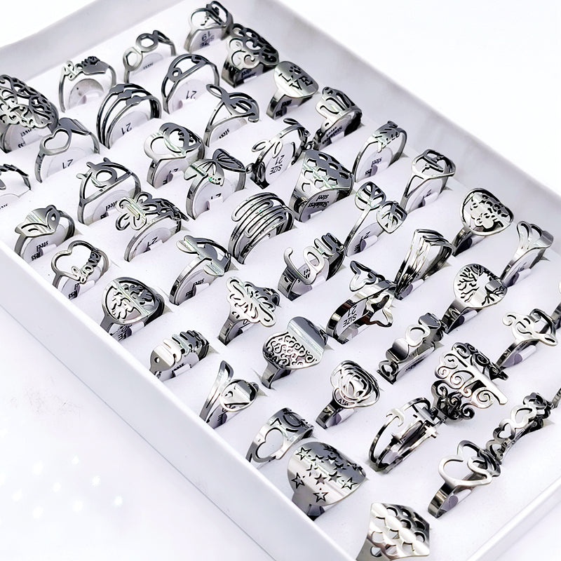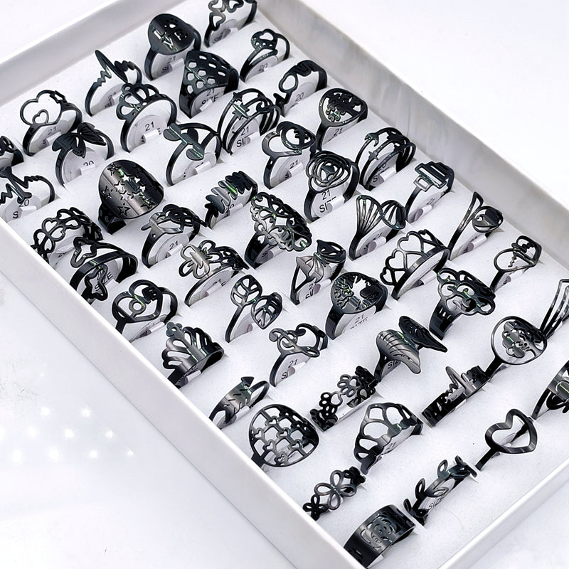 Elegant and stylish, these stainless steel rings feature a beautiful hollow flower design. Perfect as a gift for men.