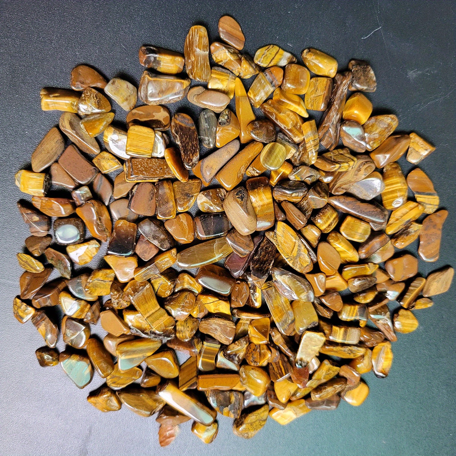 Enhance your space with these tiger's eye chips crystals. Perfect for fountains, vases, fish tanks, pots, and energy healing. Each stone is unique and carries healing energies.