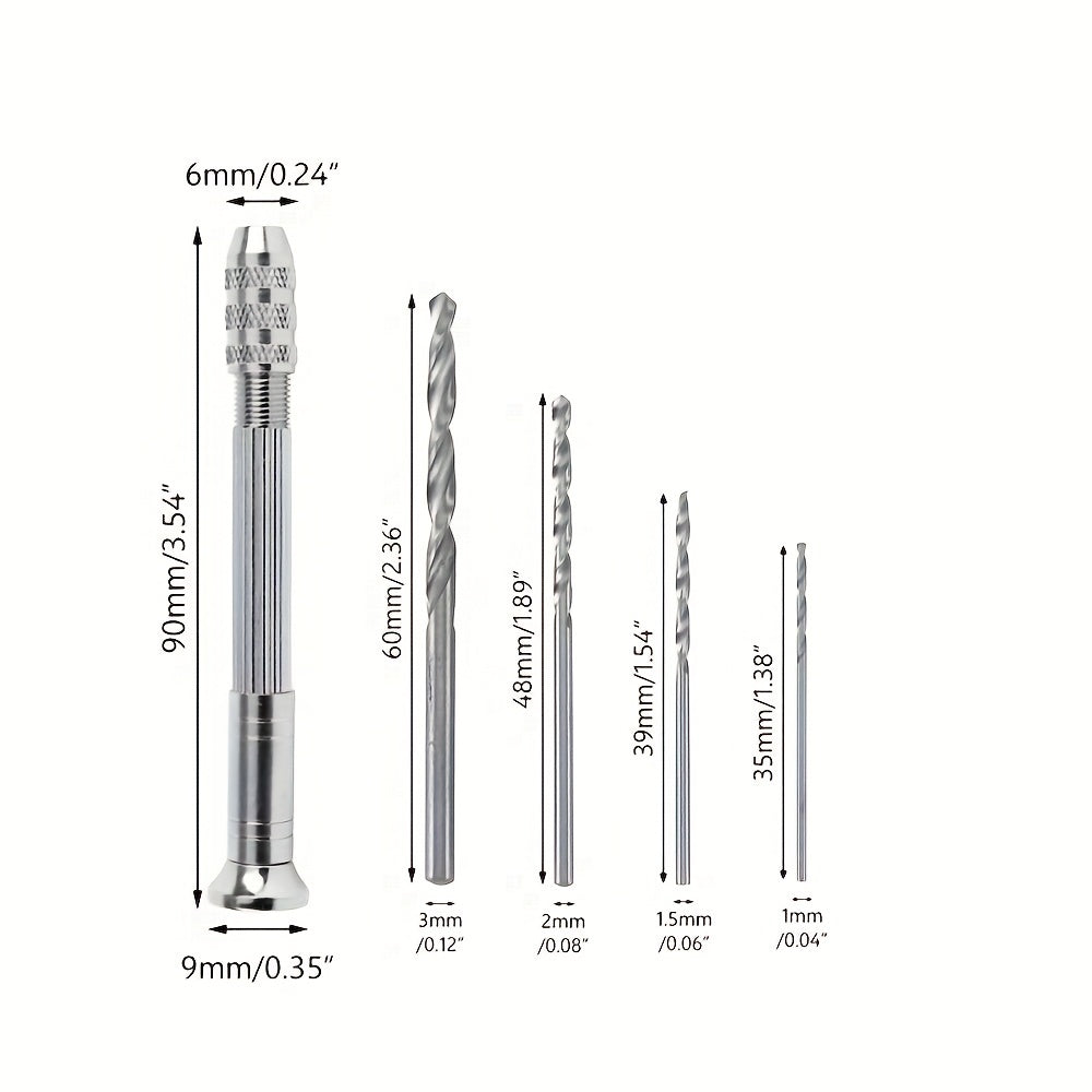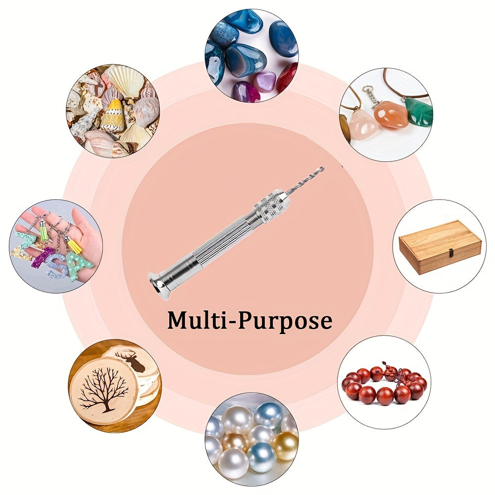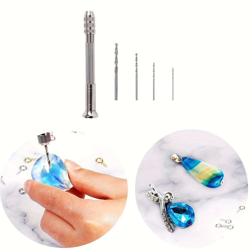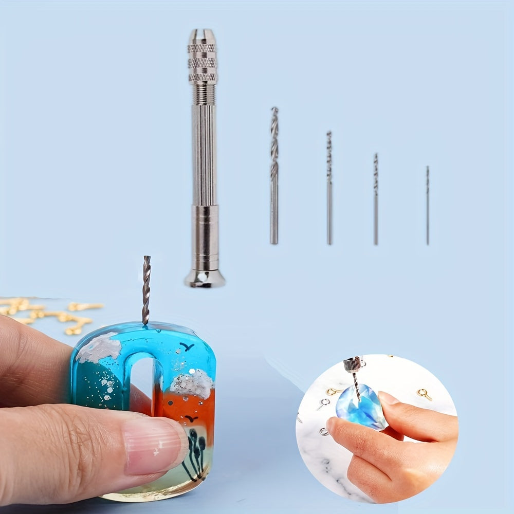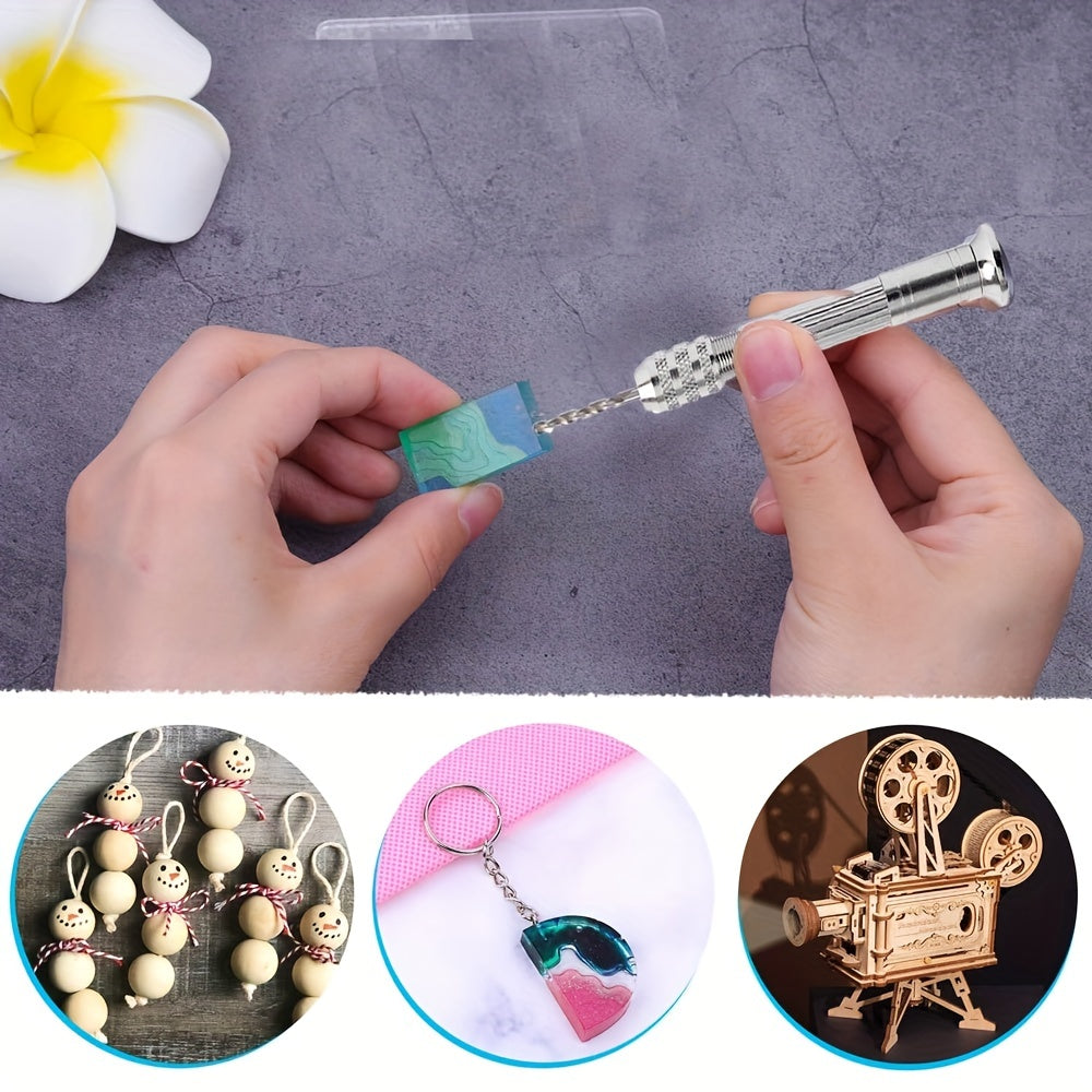 This set includes 1pc round head hand twist drill and 4pcs drill screw eye needles. Ideal for drilling into wood, resin, plastic, and making keychains, pendants, earrings, and jewelry.