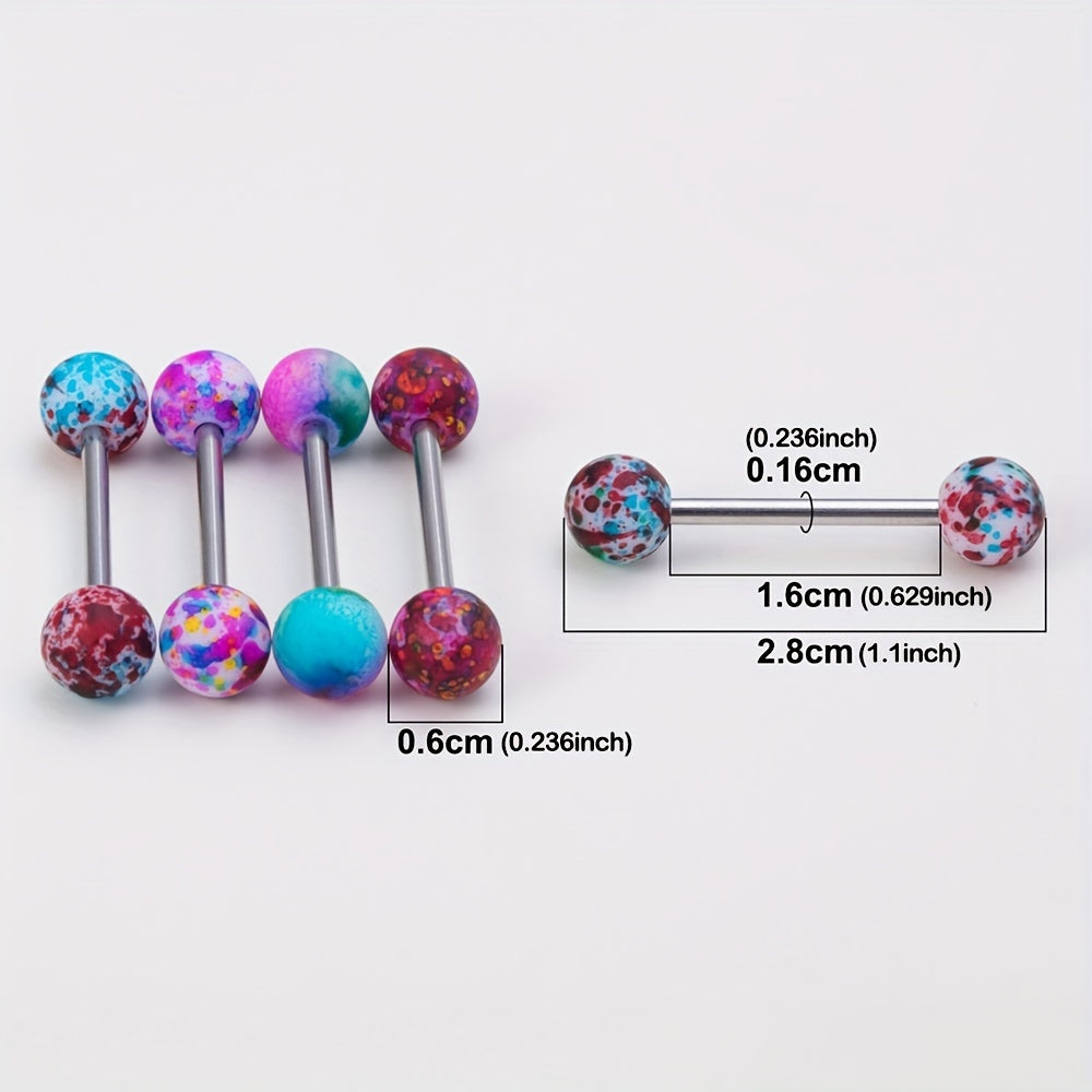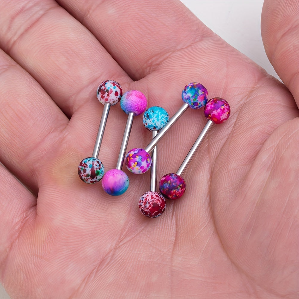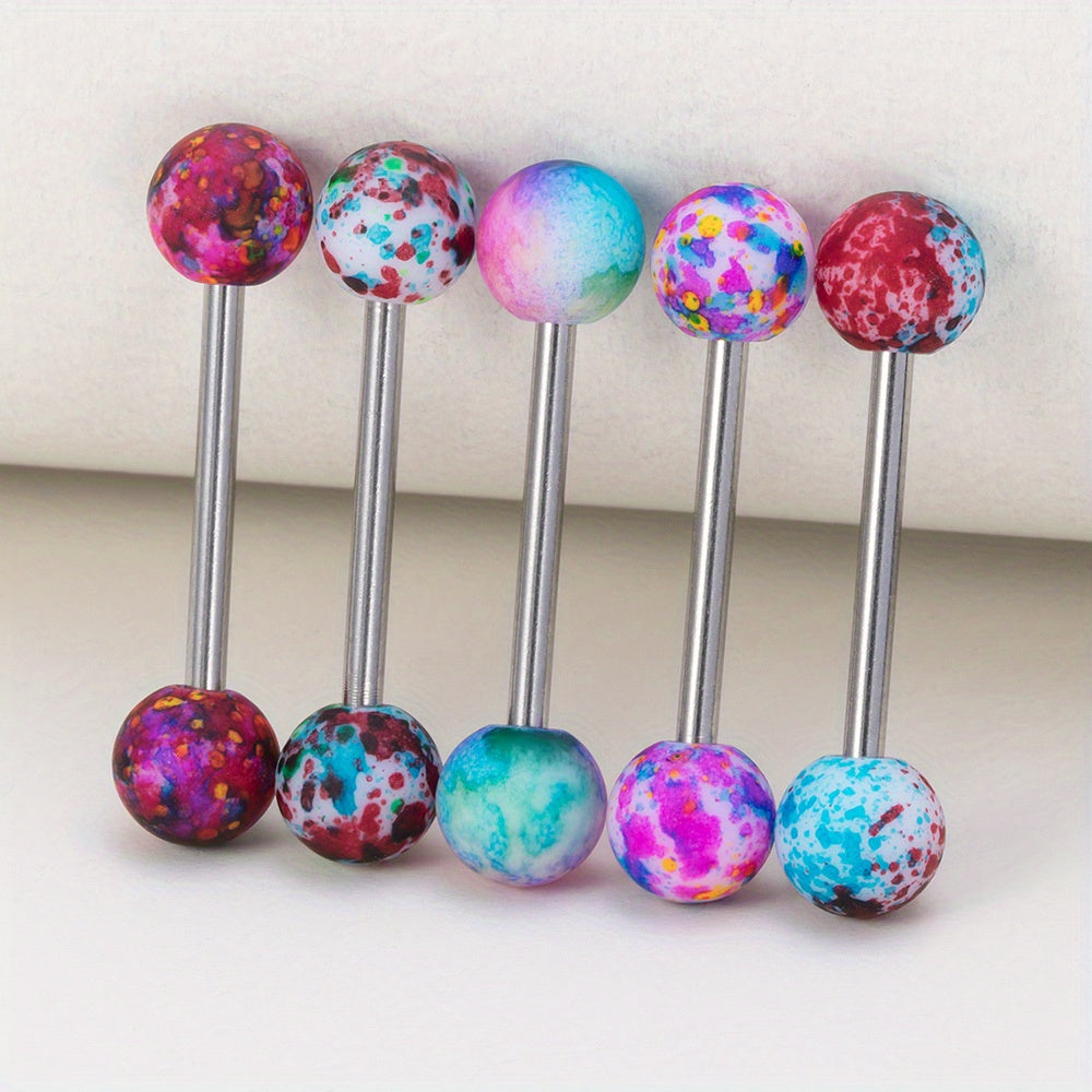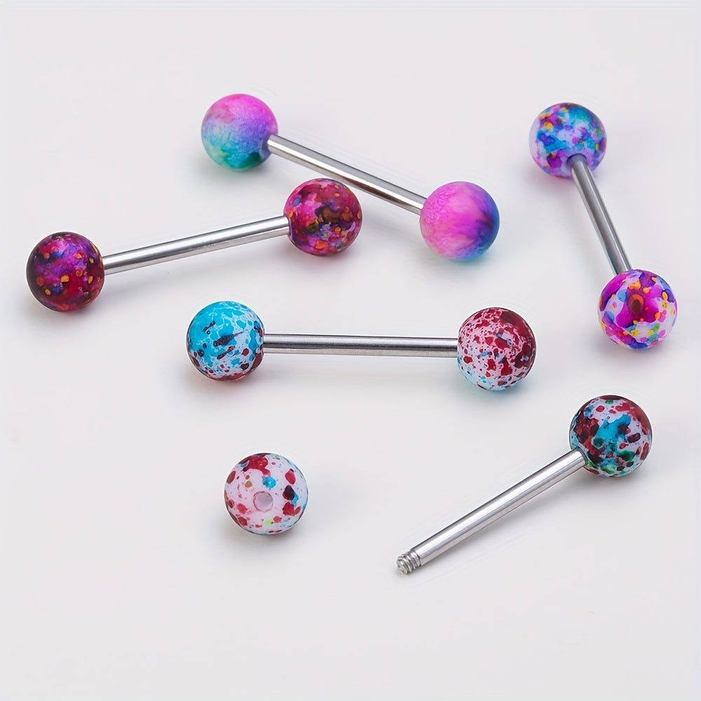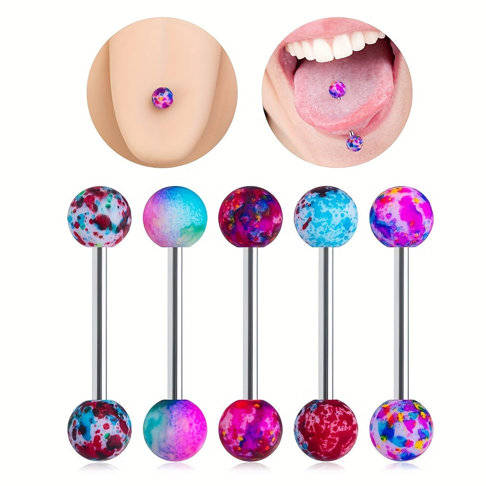 These acrylic speckle ball tongue rings are specially designed for men, made of surgical steel. They are perfect for tongue piercings, also suitable for nipple piercings. The set includes 5 pieces of jewelry retainers.