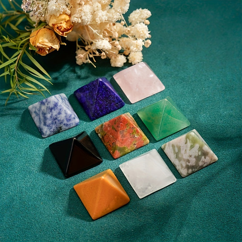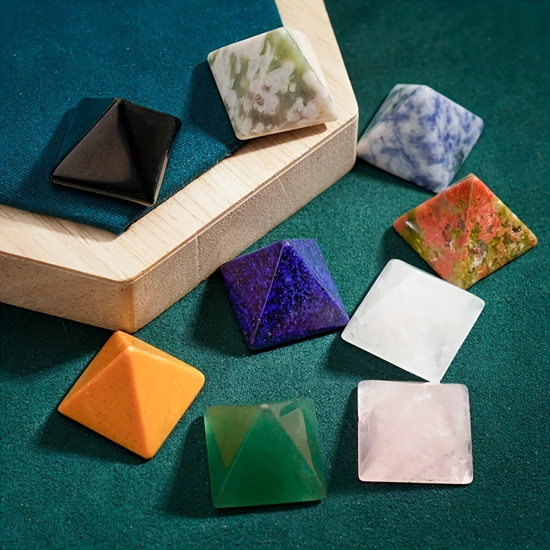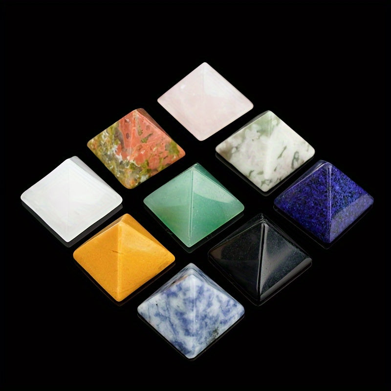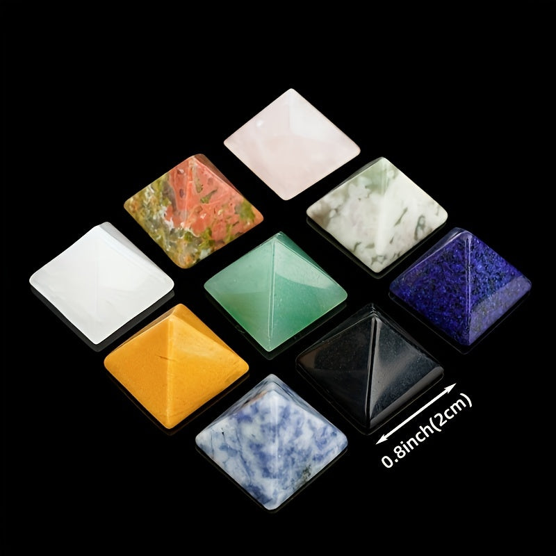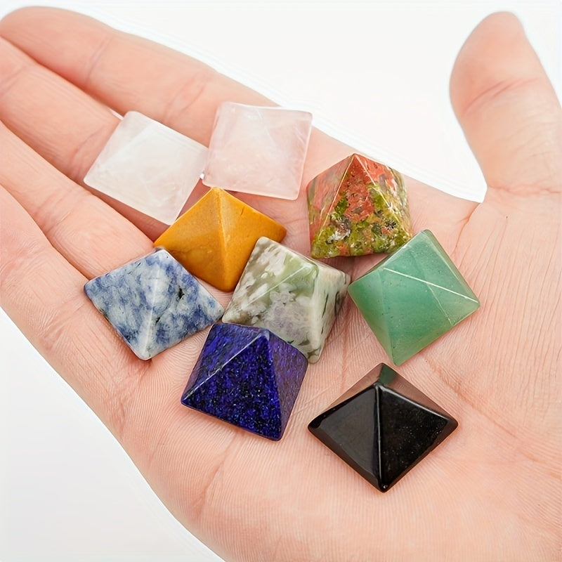 This set contains 5 natural crystal pyramids made of quartz, perfect for healing, chakra balancing, energy generation, meditation, and Reiki. They can also be used as office decorations or gifts.