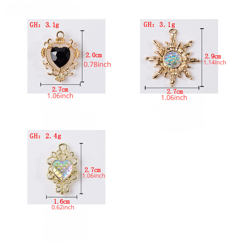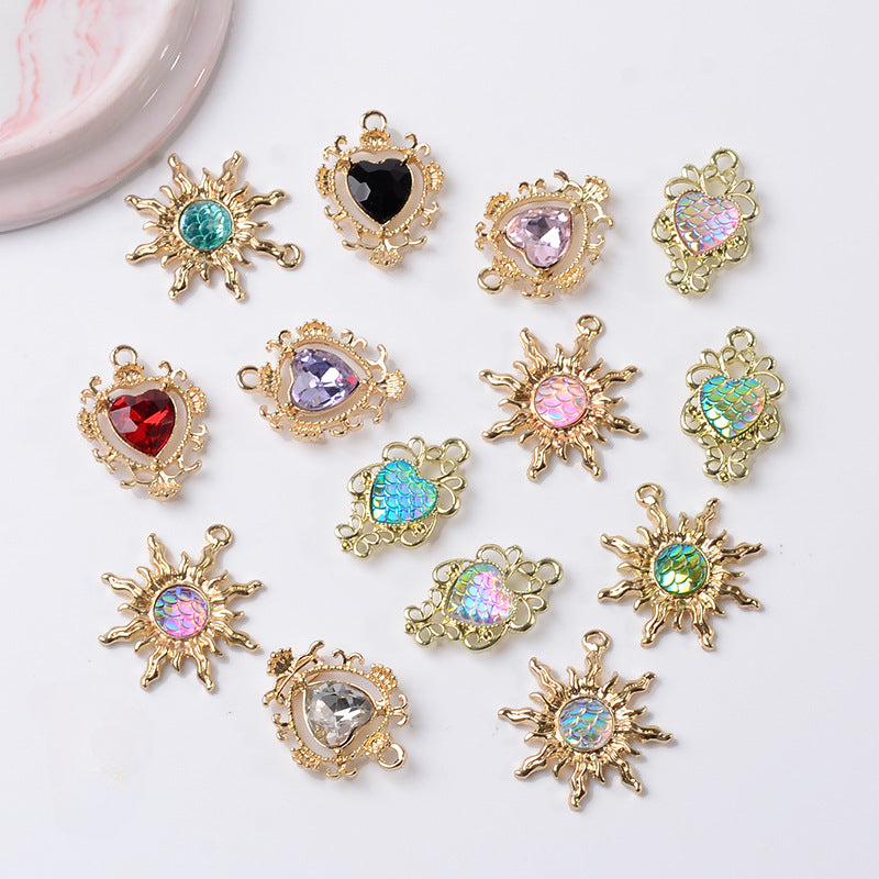 Add a touch of sparkle to your DIY jewelry projects with these colorful rhinestone sun and heart pendant charms. Perfect for bracelets, earrings, and more!