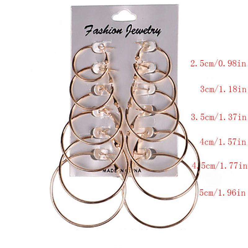 Enhance your daily, party, or casual look with this set of 6 classic size hoop earrings. Perfect for any outfit or occasion.