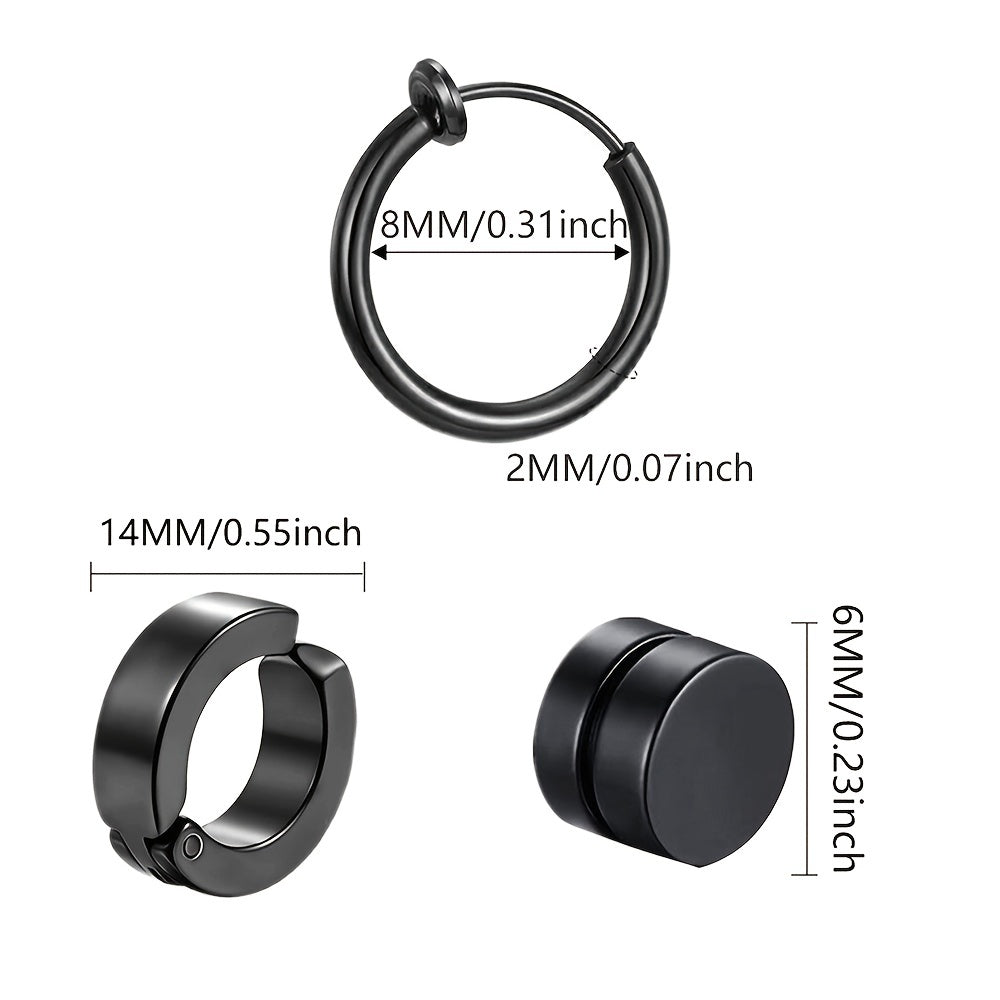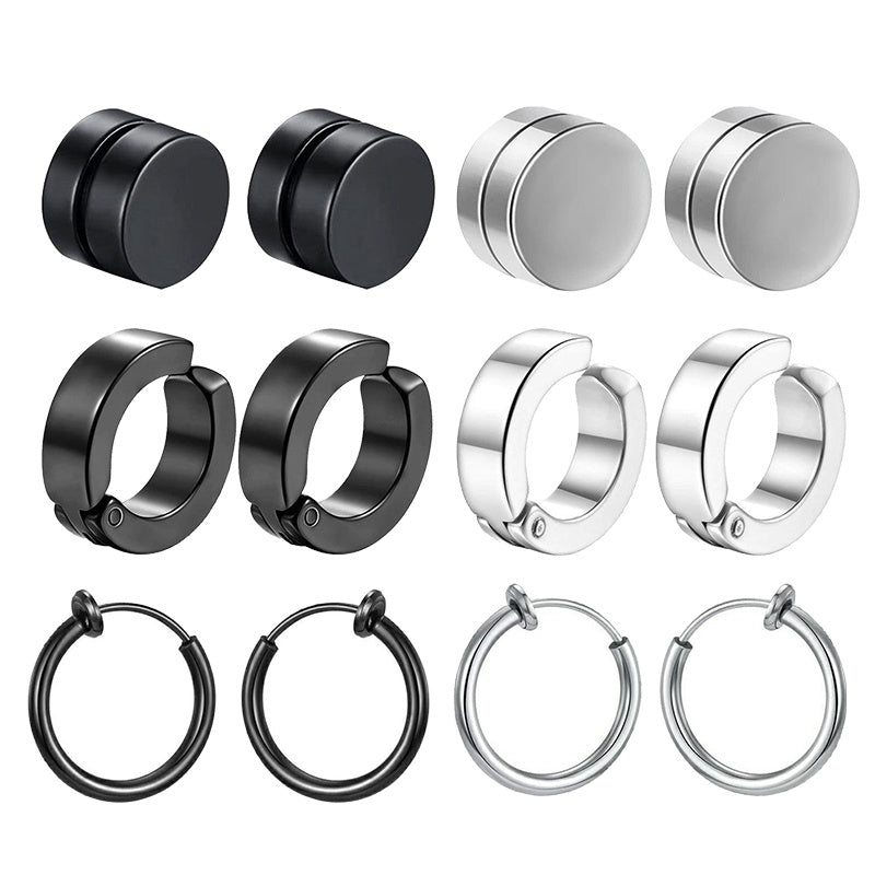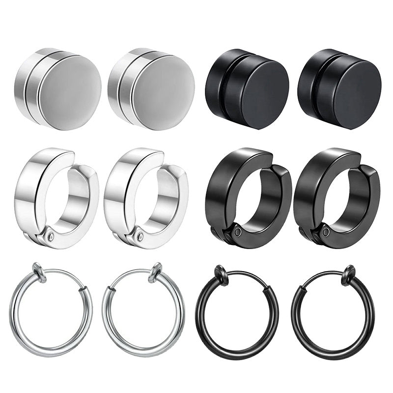 This set includes 6 pairs of magnetic stud earrings that can be worn by both men and women. Made with high-quality CZ crystals, these earrings are designed for non-pierced ears and feature a strong magnet for a secure fit.