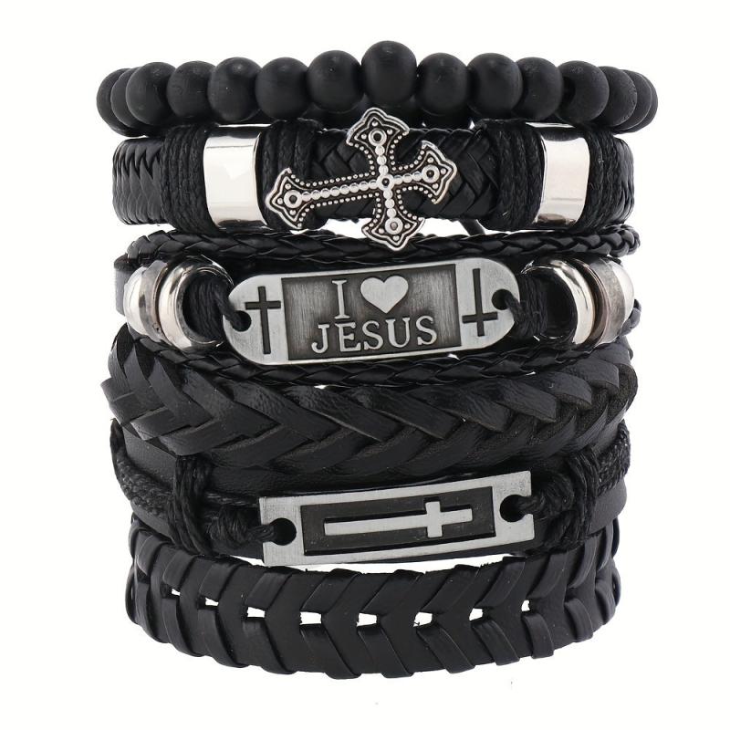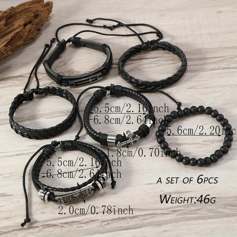 Get ready for Easter with this 6-piece faux leather bracelet set featuring a handwoven design. The bracelets are perfect for adding a touch of retro punk style to your outfit.