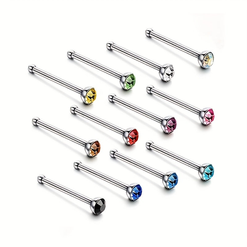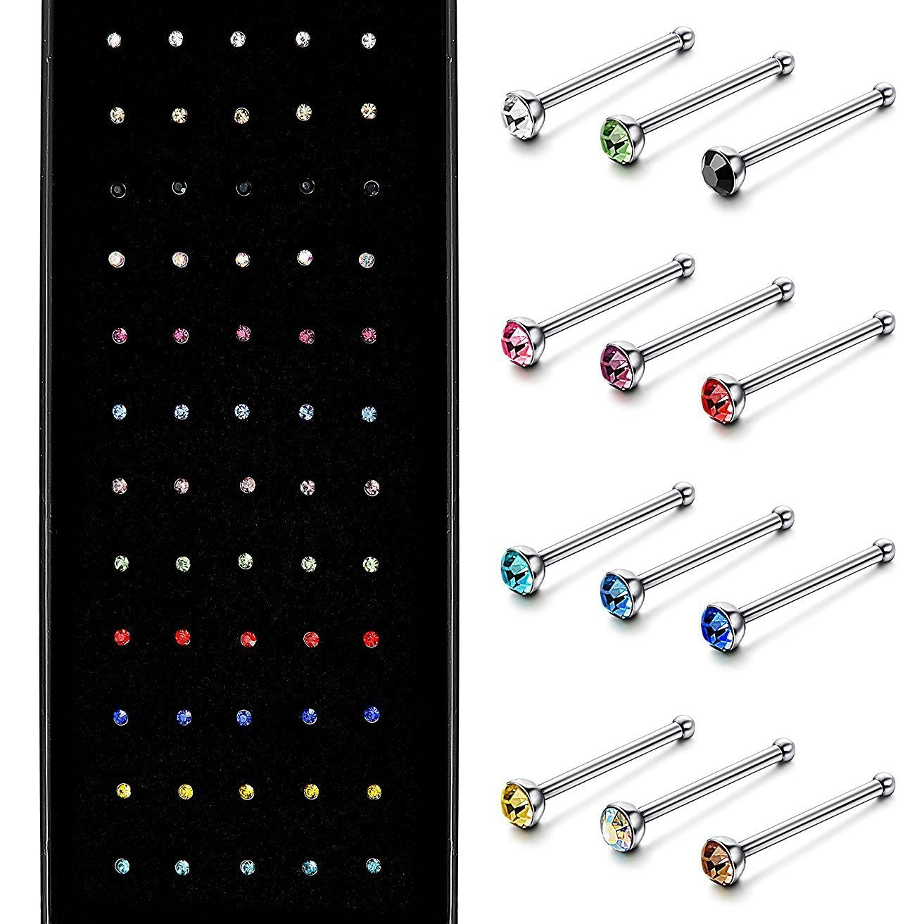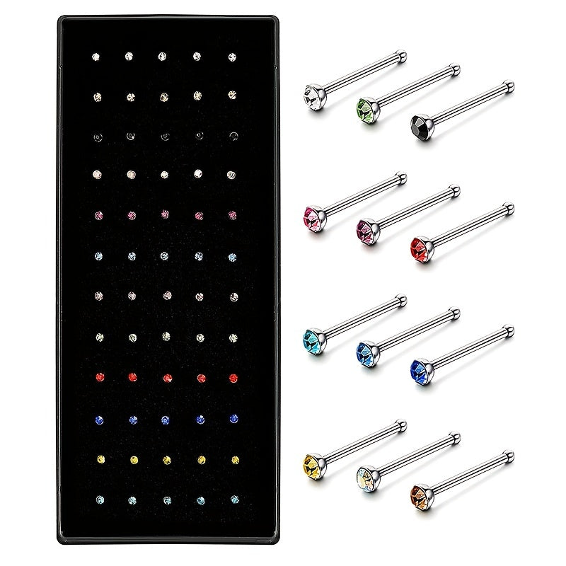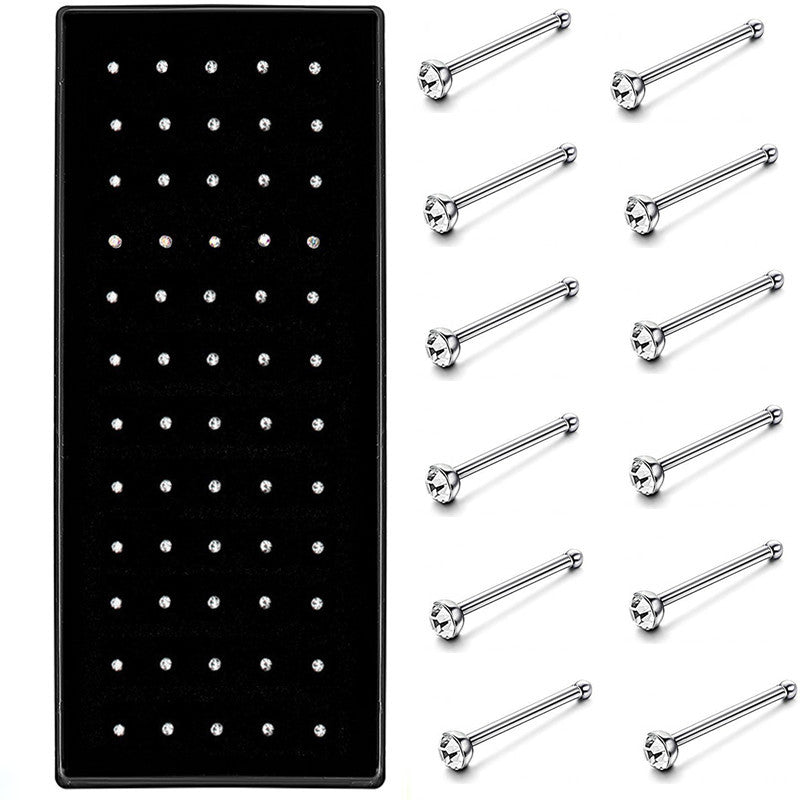 Enhance your look with this set of 60 stainless steel nose stud rings. Perfect for nose piercings, these studs are durable and stylish.