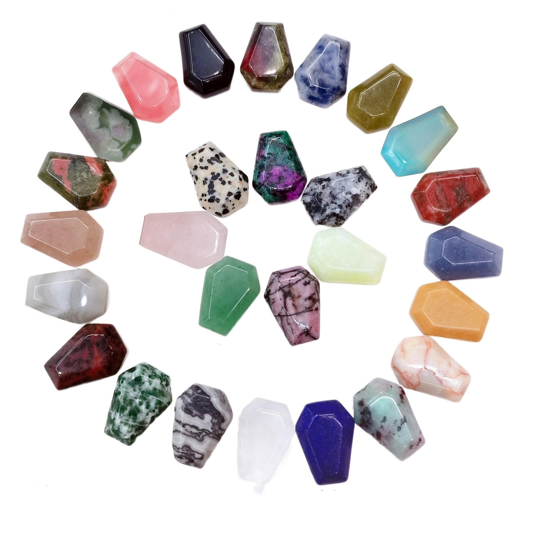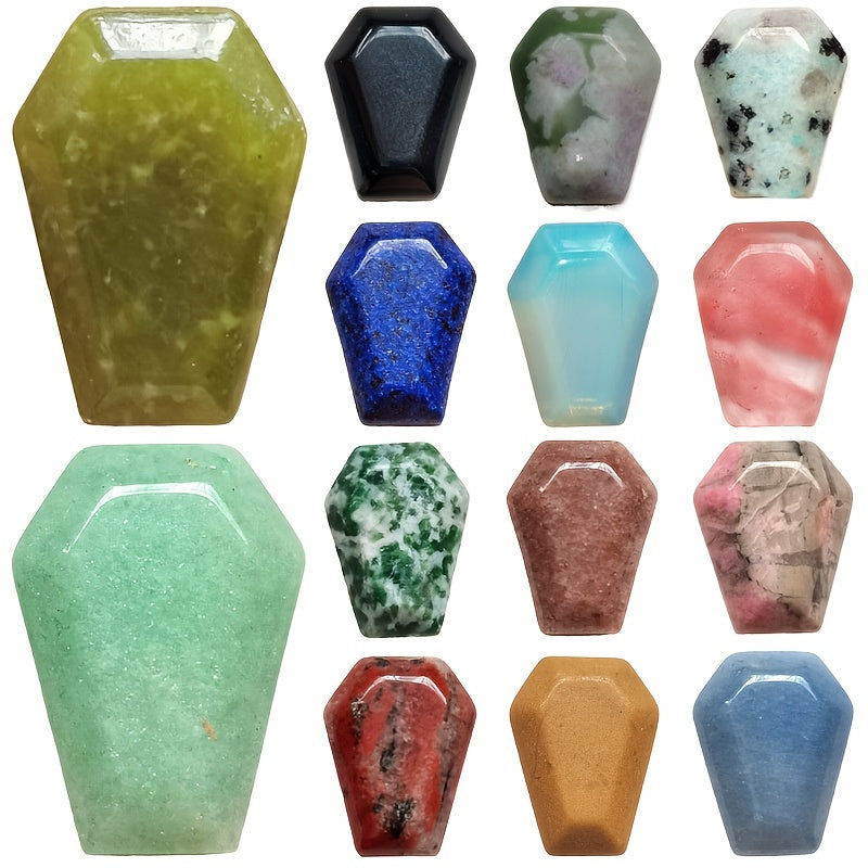 Enhance your crafts with this set of 6 coffin-shaped crystal stones. Perfect for jewelry making, decor, or crafts, these natural crystal agate stones make a unique addition.