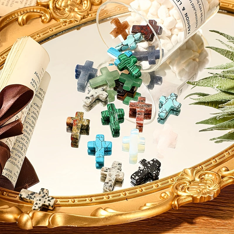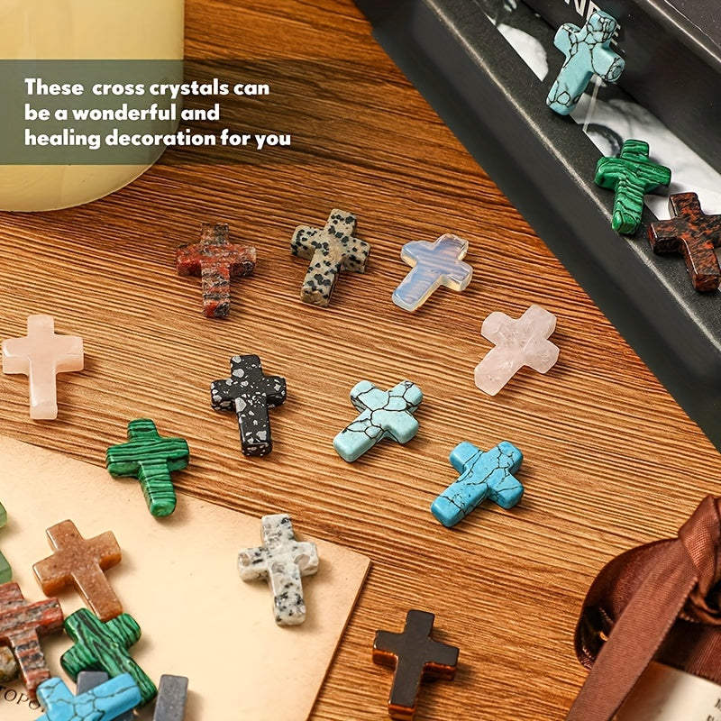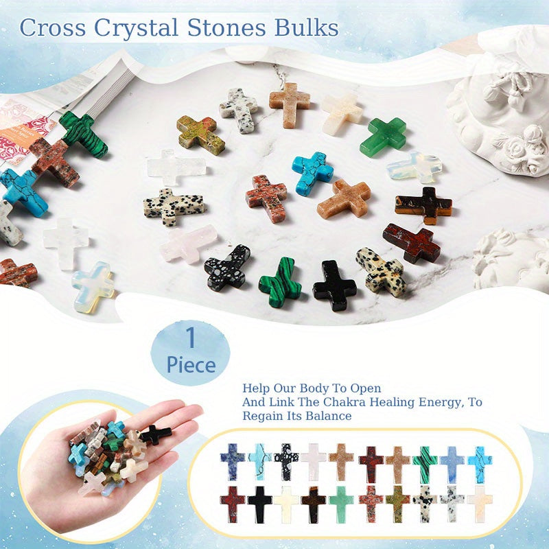 Enhance your home decor with these natural crystal cross ornaments made from raw stone material. Each piece is carefully crafted with sanding detail for a unique look and feel. Harness the energy of these stones to promote positive vibes in your living space.