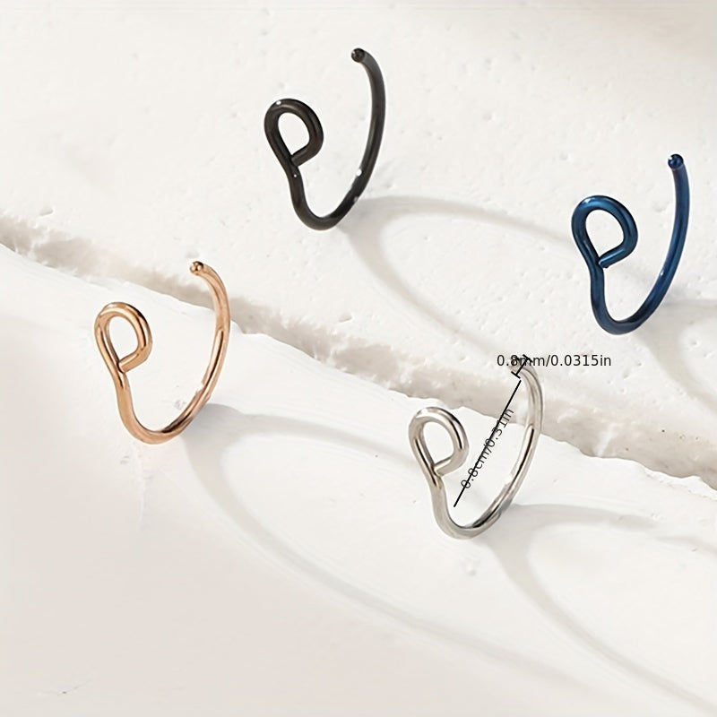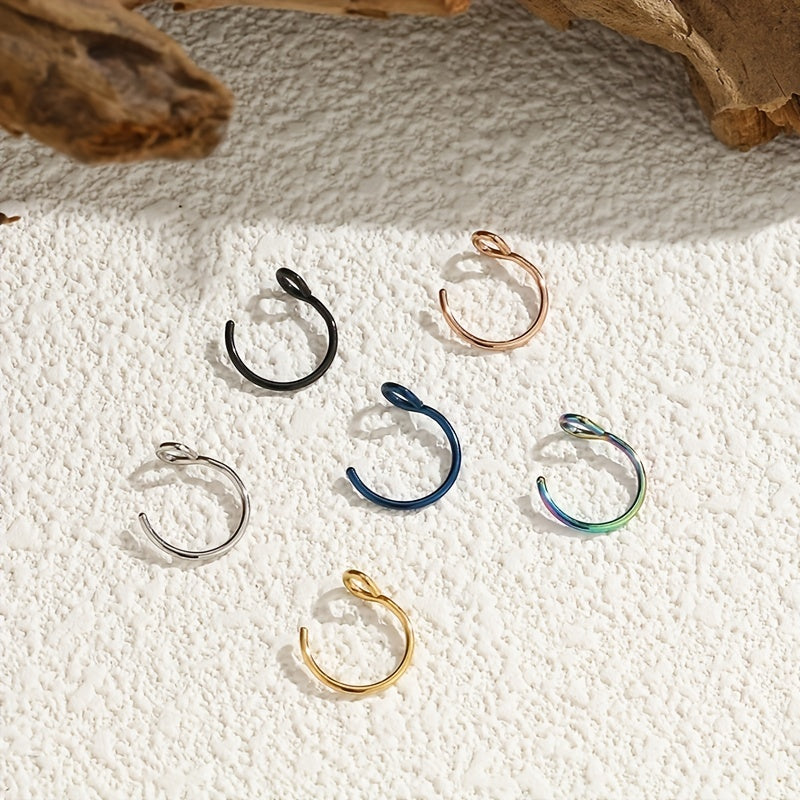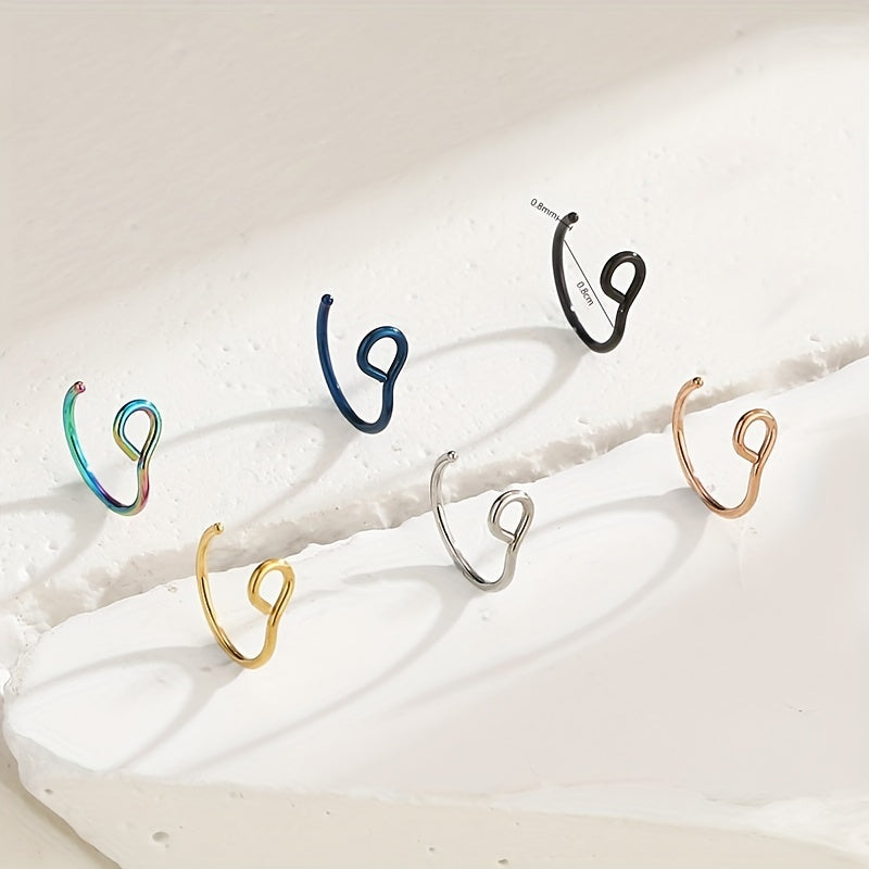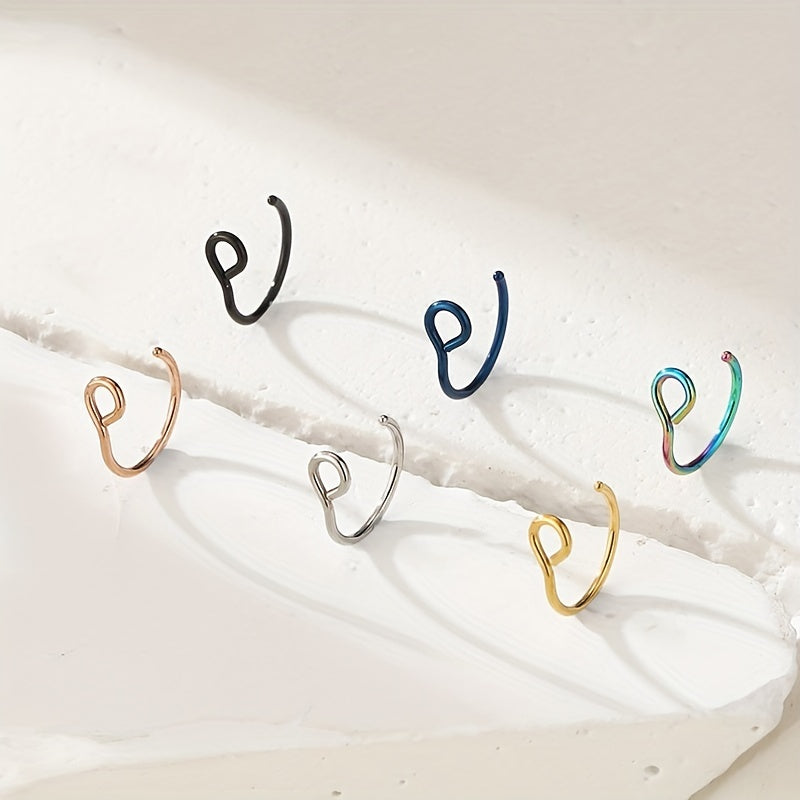 Add a stylish touch to your look with these stainless steel nose rings. Each set includes 6 fish hook shaped nose piercings.