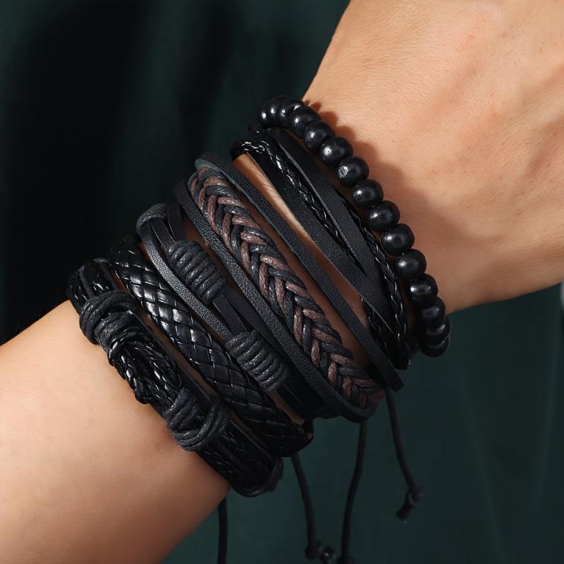 Enhance your style with this set of 6 vintage bracelet wristbands made from woven faux leather. These DIY wristbands offer a touch of retro charm to your look.