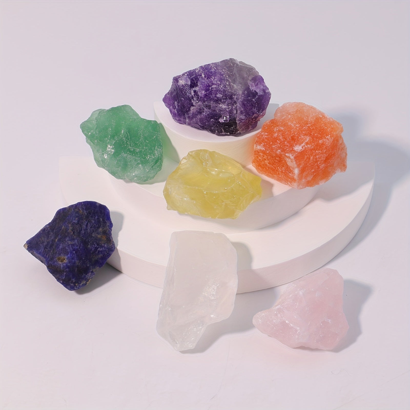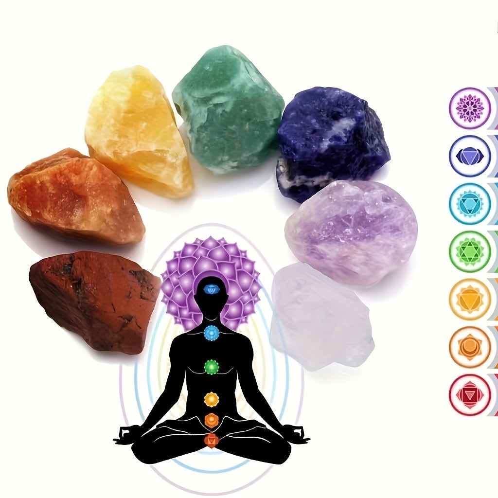Complete Chakra Healing Crystals Kit made of natural rough raw stones. Perfect for tumbling, good luck charms, and home decor.