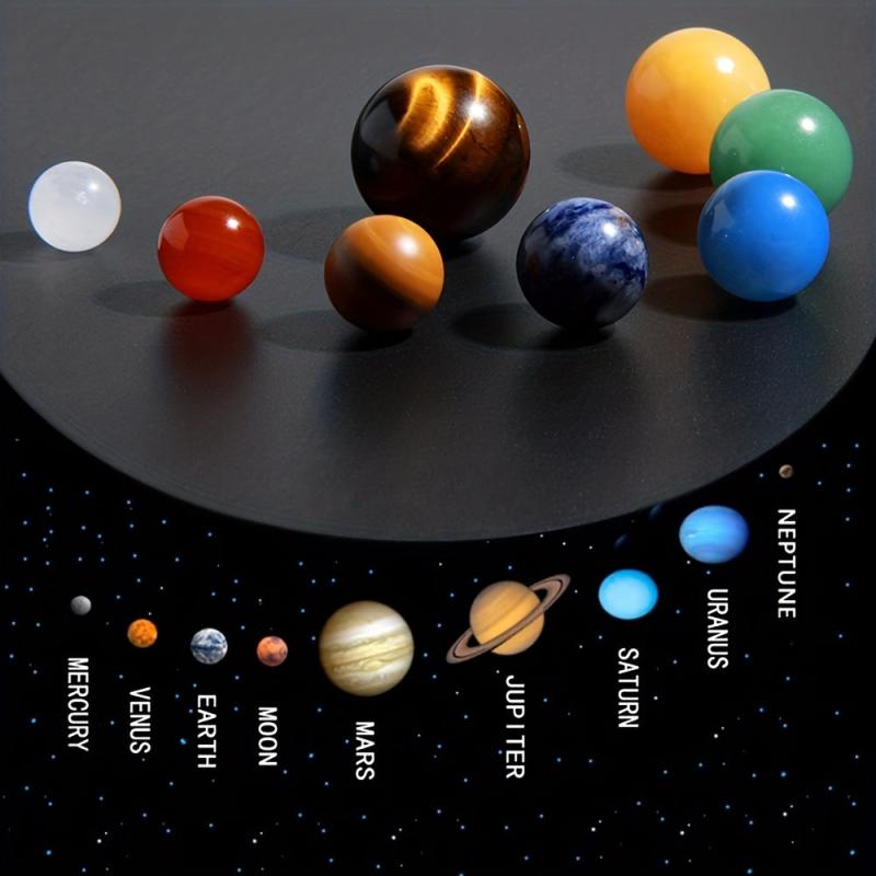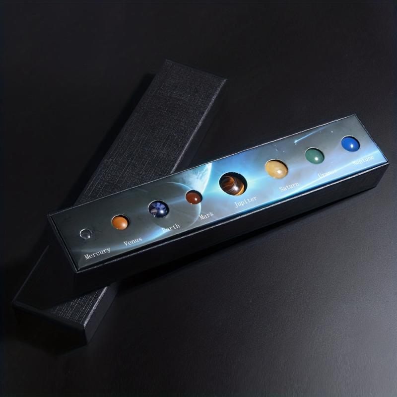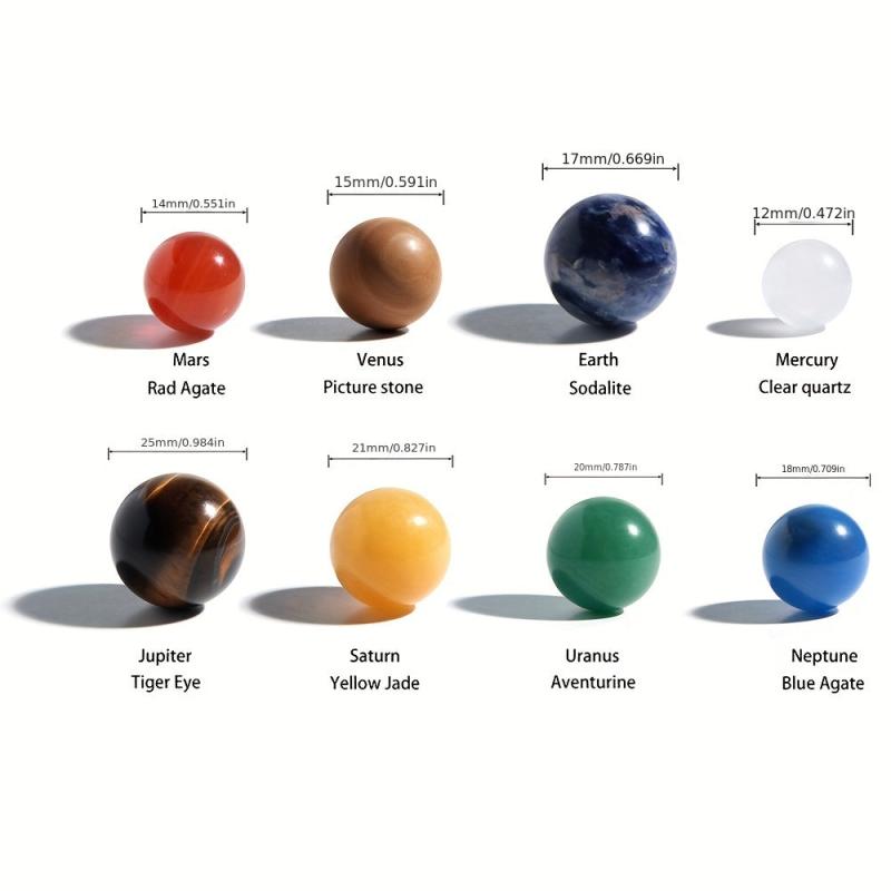 Bring the solar system to your desk with this set of 8 natural gemstone planets. Ideal for home or office decorations, makes a creative gift for kids, men, and women.