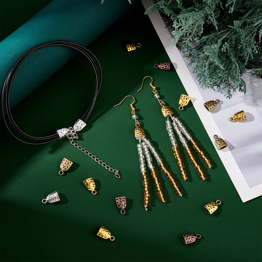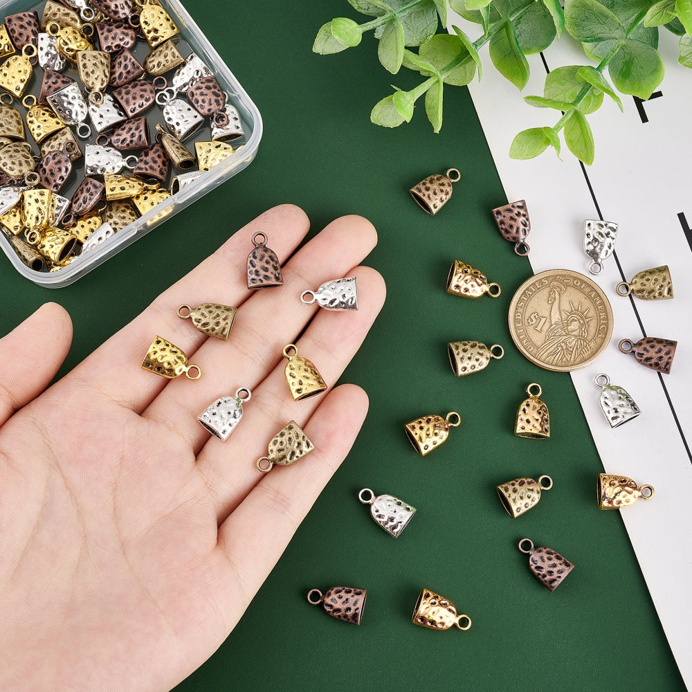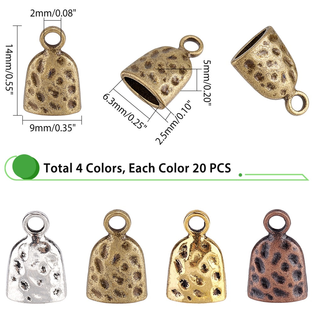 Get creative with these 80 small bell pendants in 4 colors. Perfect for earrings, bracelets, necklaces, and more. Made of zinc alloy with a 2mm hole.