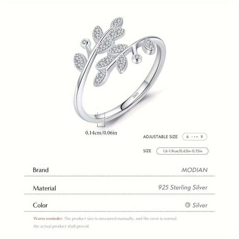 Elegant 925 sterling silver adjustable ring featuring sparkling CZ lucky tree leaf design. Perfect for daily wear and parties. Makes a great fine jewelry gift for women.