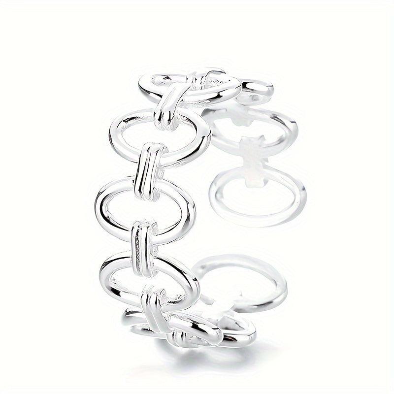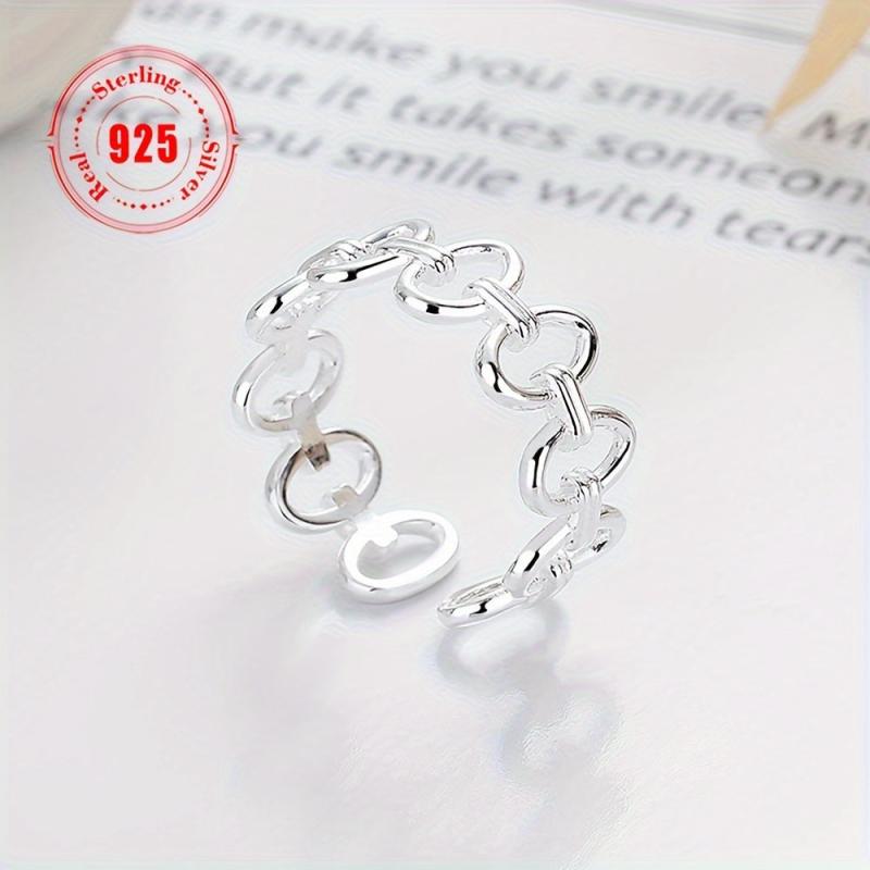 This 925 sterling silver ring features a unique circle splicing design that is versatile and stylish. Perfect for daily wear and commuting, this ring is a great addition to any jewelry collection.