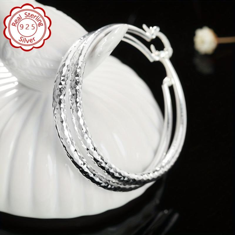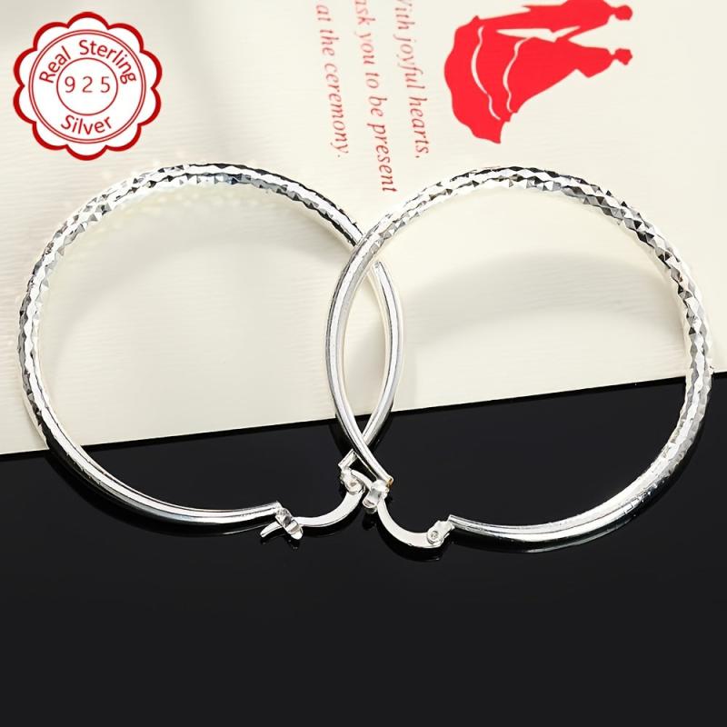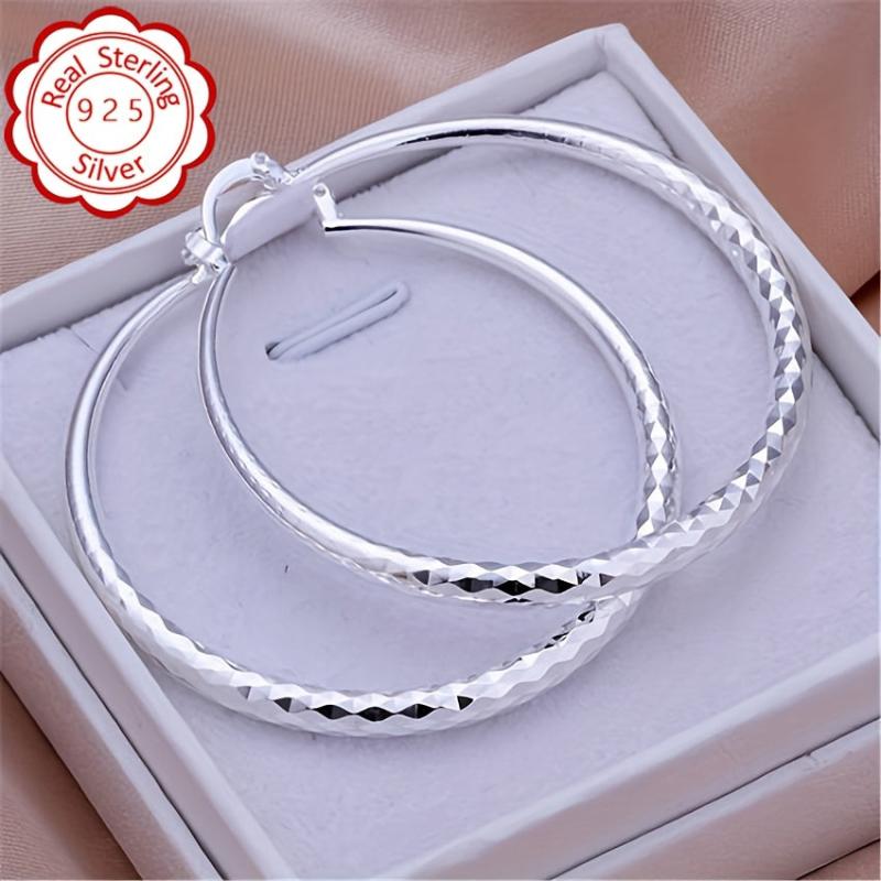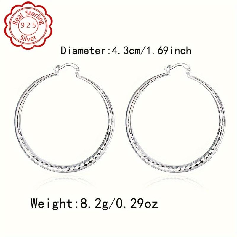 Elegant pair of 925 silver earrings with large round silvery hypoallergenic ear posts. Perfect for daily wear and vacation.