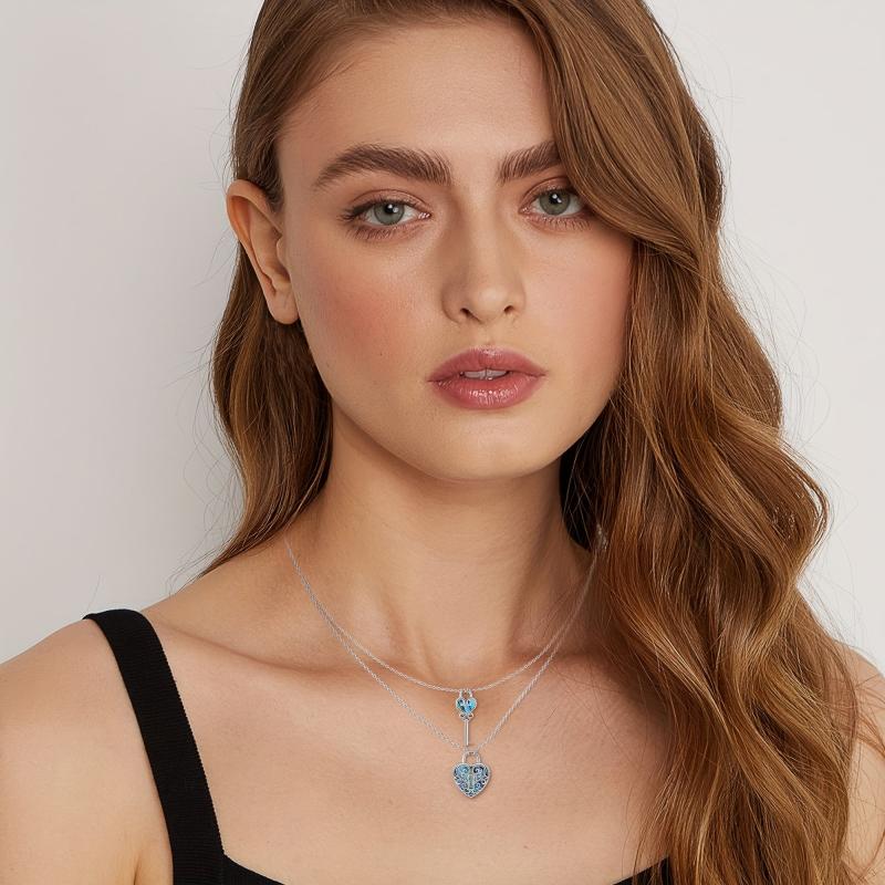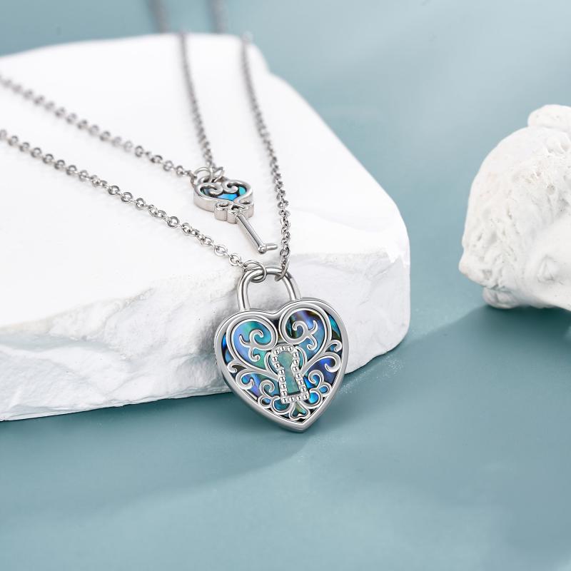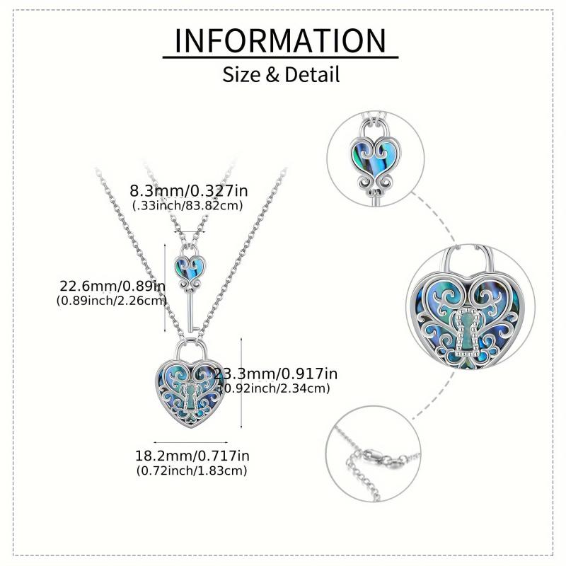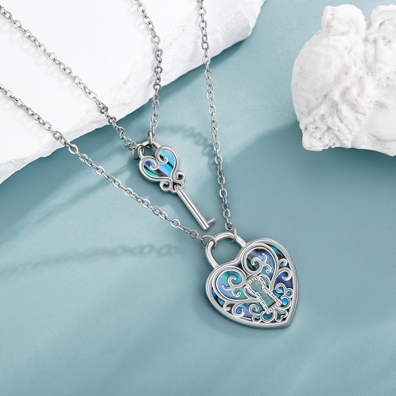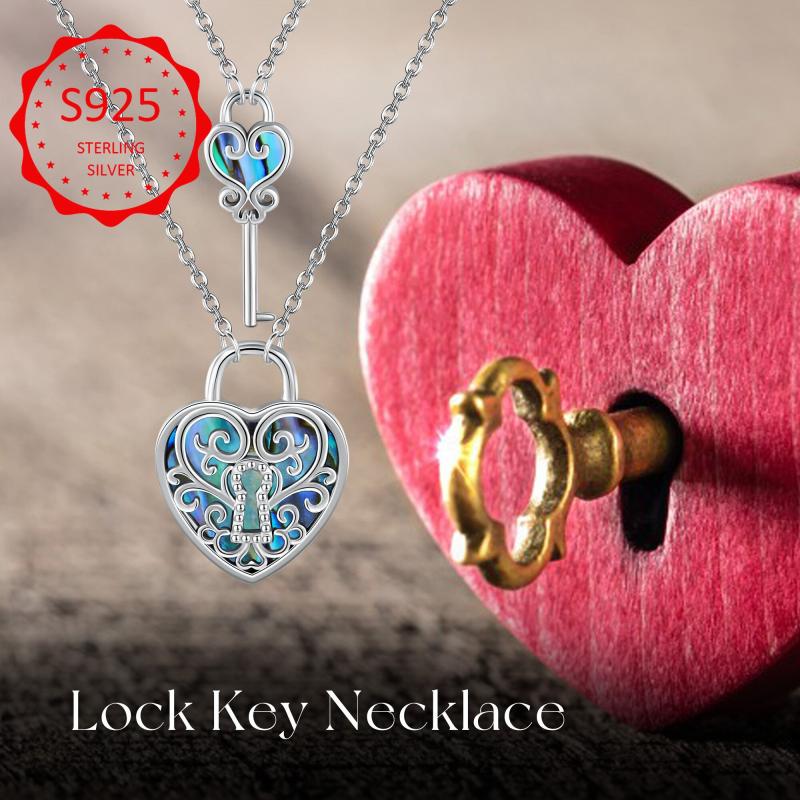 Celebrate your bond with this stunning lock and key couple necklace set. Crafted from 925 sterling silver, the filigree design features abalone shell accents for a unique touch.