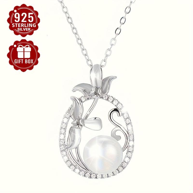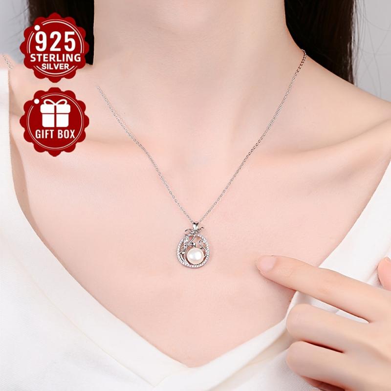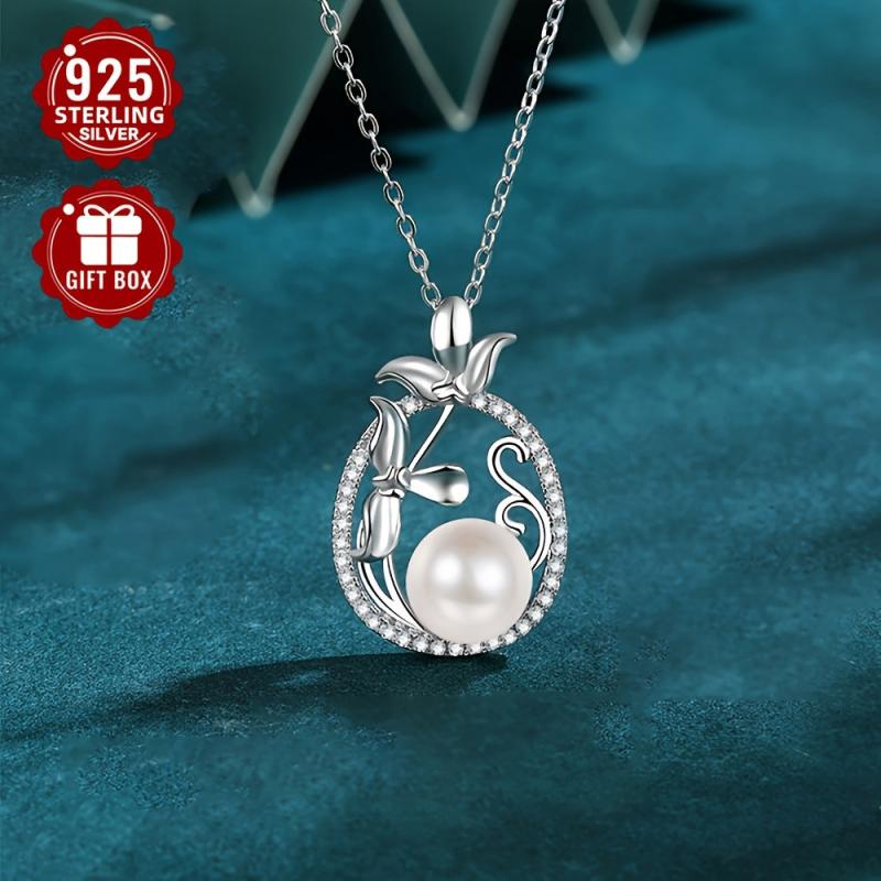 This elegant pendant necklace features a beautiful pearl on a 925 silver chain, making it a perfect accessory for any outfit.