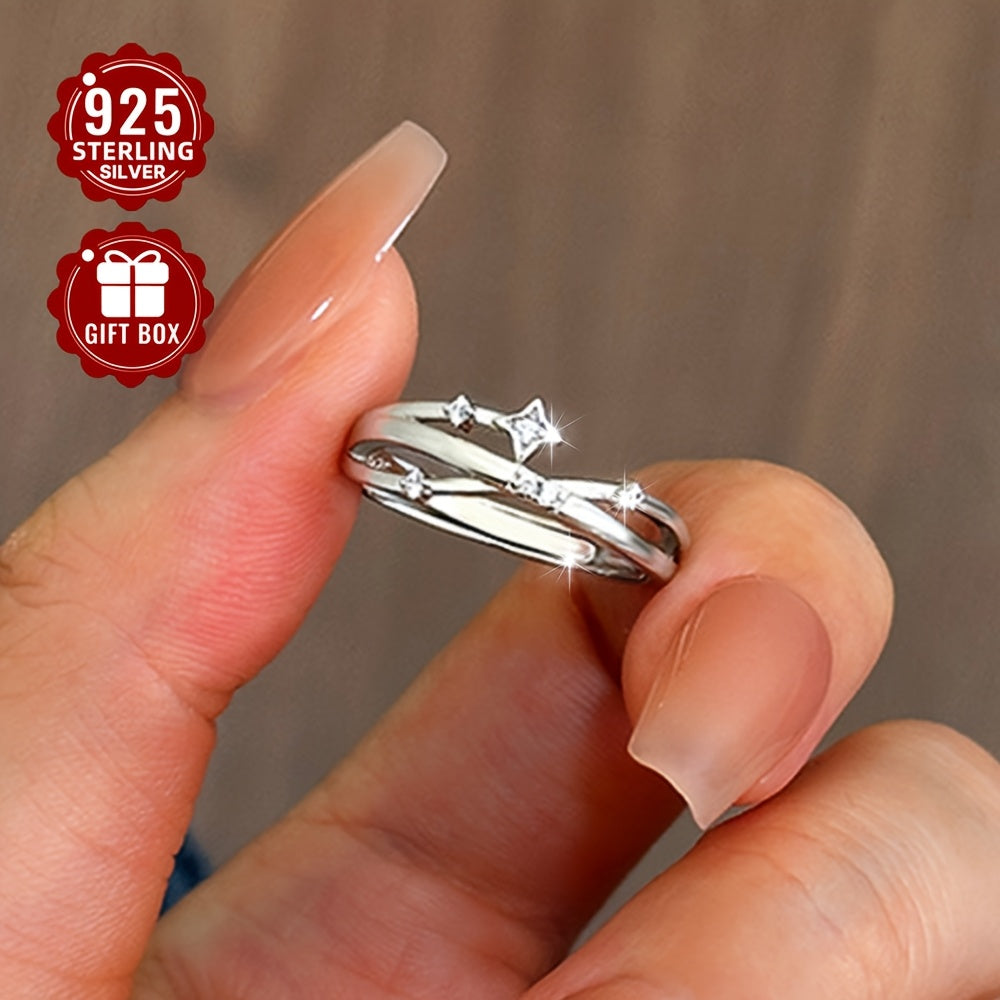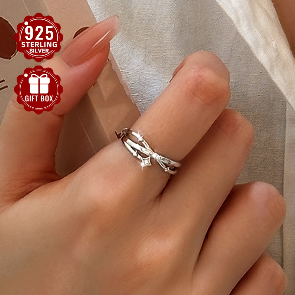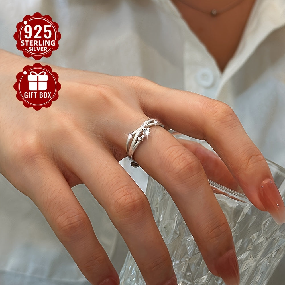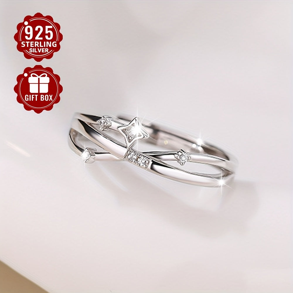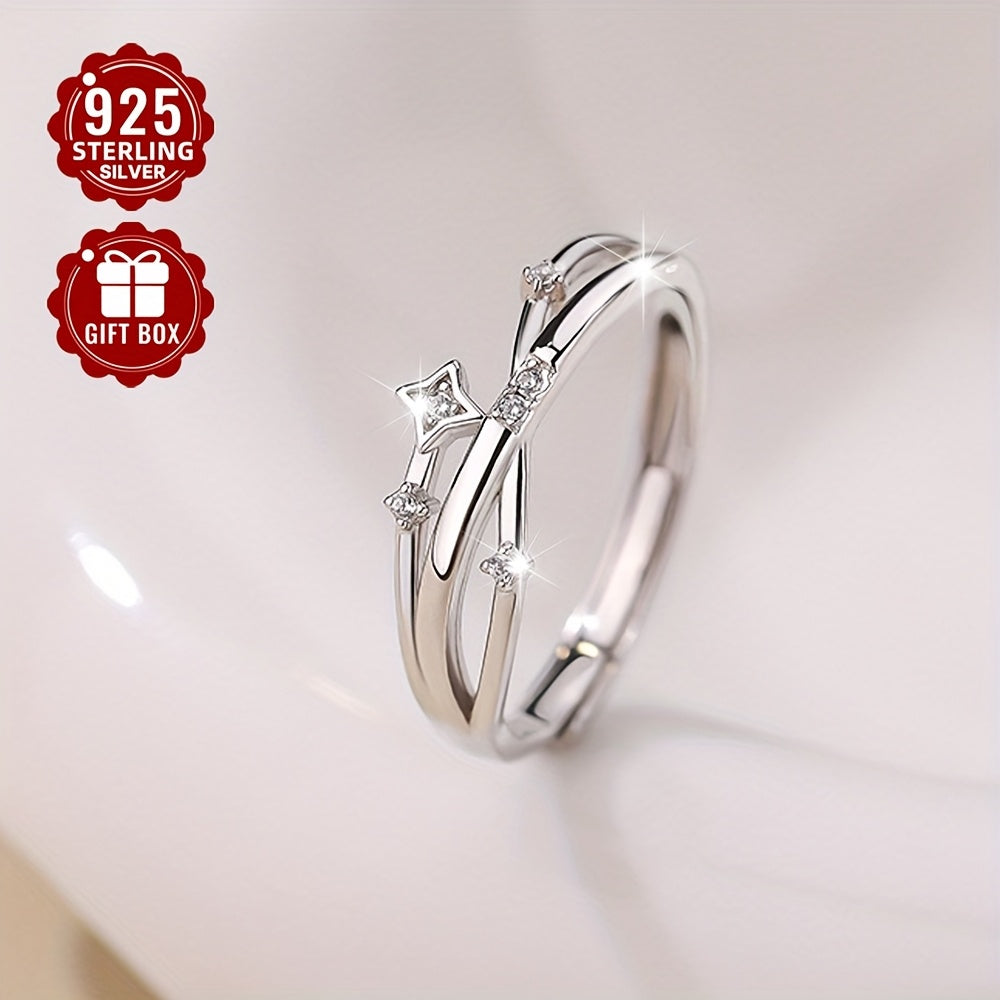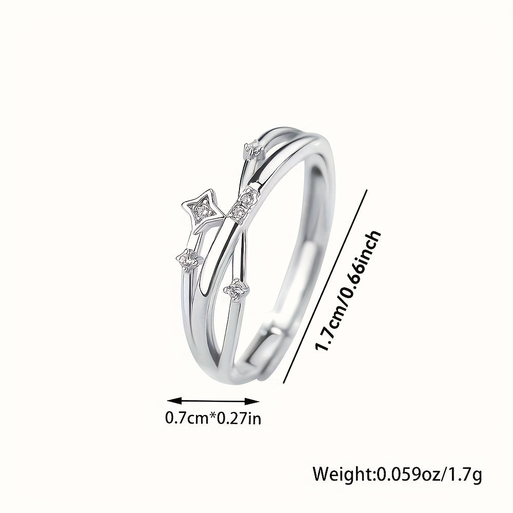 Elevate your style with this unique ring featuring a four-pointed star cross design. Made of 925 sterling silver and synthetic zirconia, this ring is perfect for daily wear and makes a great gift.