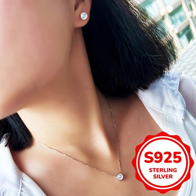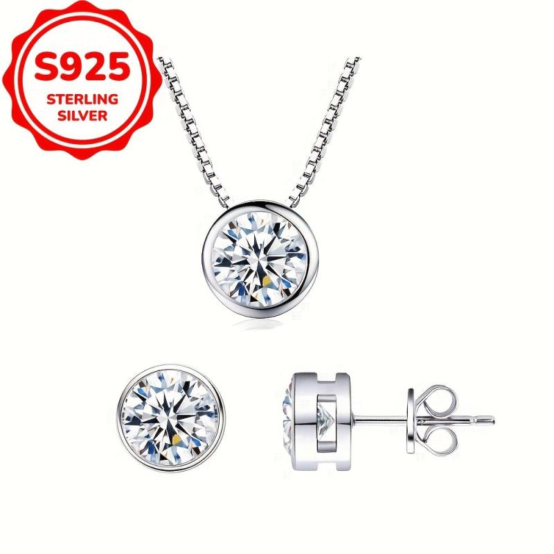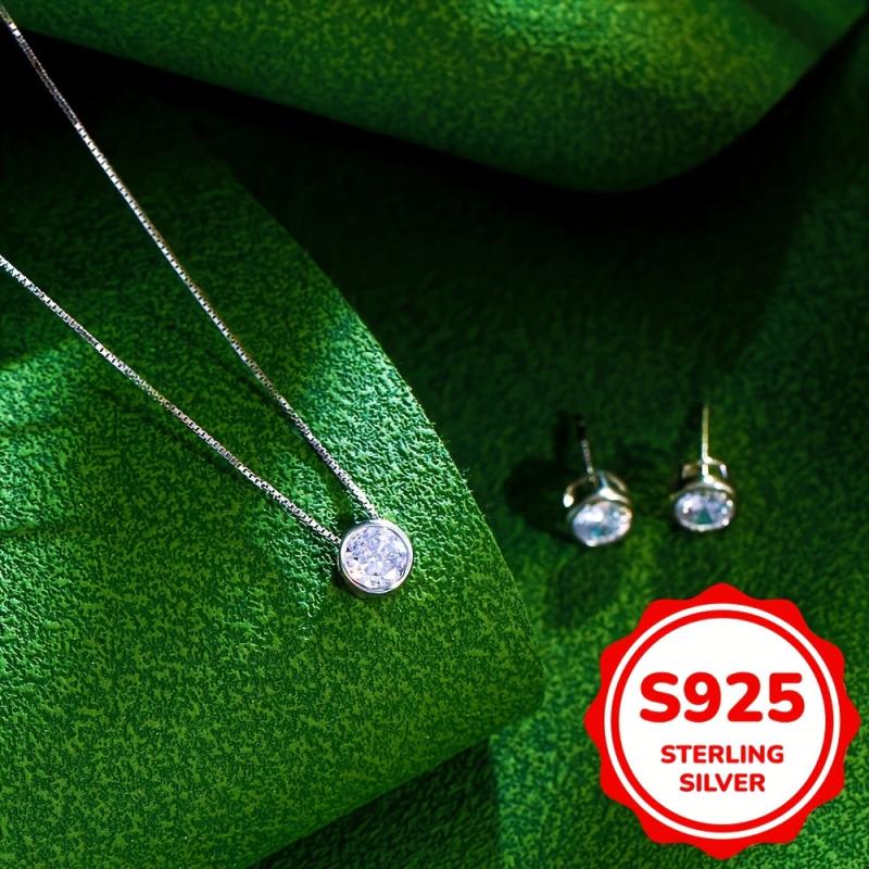 This elegant jewelry set features a 925 pure silvery design with synthetic zirconia inlays, perfect for those with sensitive skin. Ideal for holidays, birthdays, or graduations.
