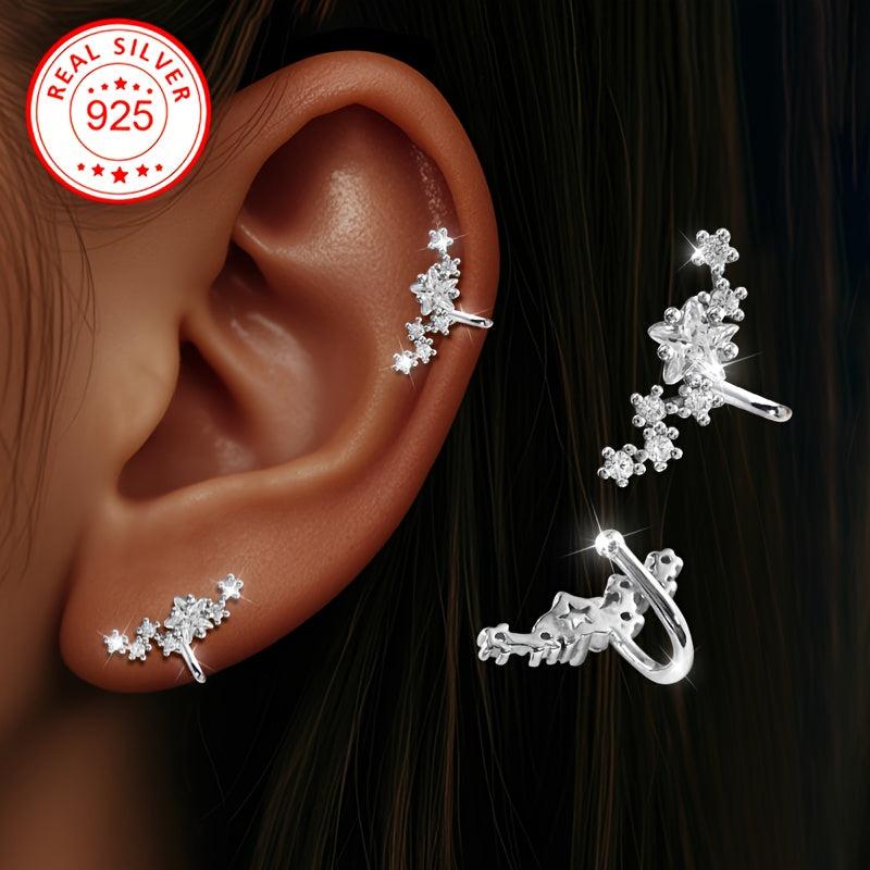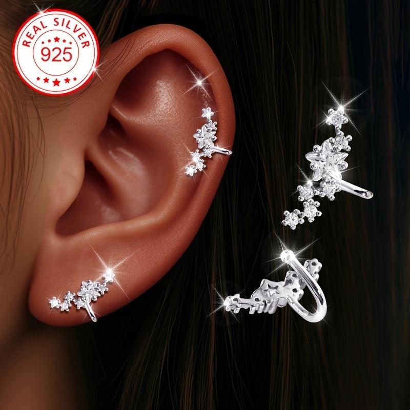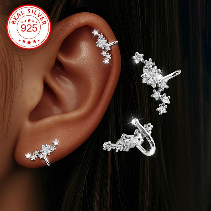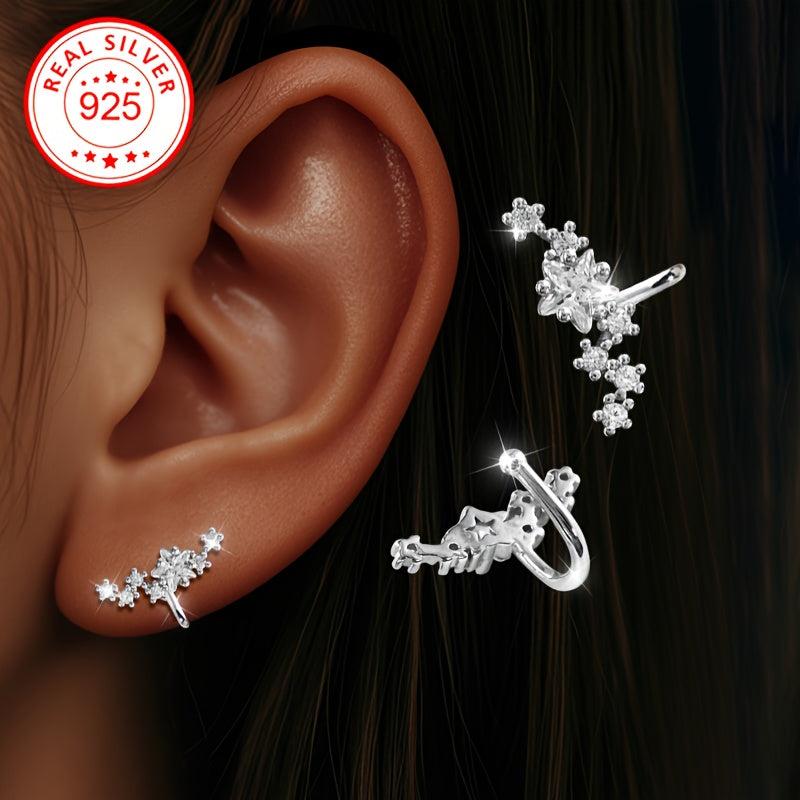 Add a touch of elegance with these sterling silver clip on earrings adorned with sparkling cubic zirconia stones and star accents. These hypoallergenic ear cuffs are perfect for those without pierced ears.