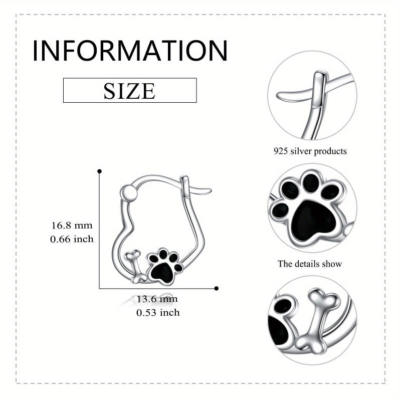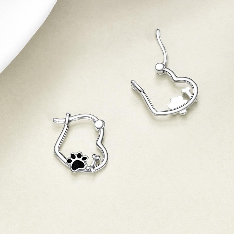 These adorable hoop earrings feature paw prints in 925 sterling silver, making them a perfect gift for any dog lover. The design is both elegant and fun, adding a touch of personality to any outfit.