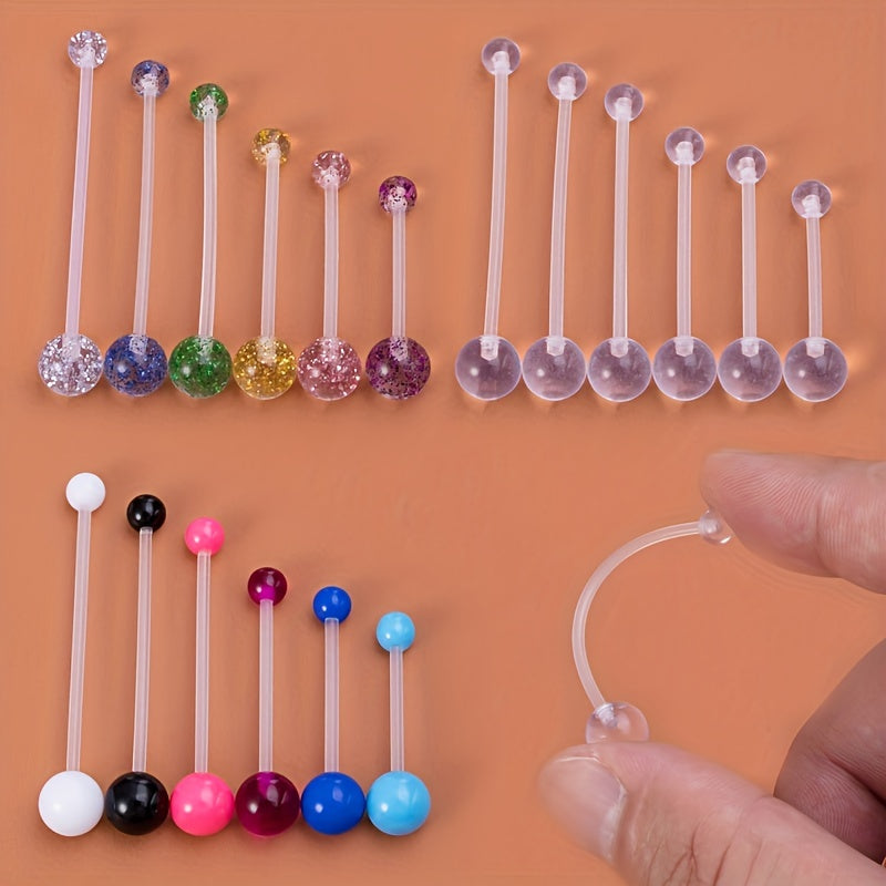Stay stylish during pregnancy with these clear acrylic long bar belly button rings. Perfect for belly piercings, these rings are comfortable and safe to wear.