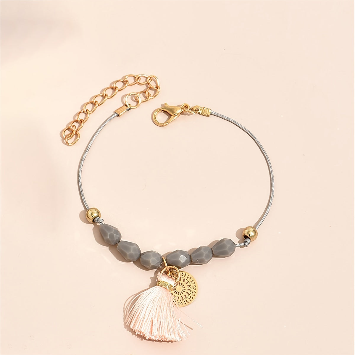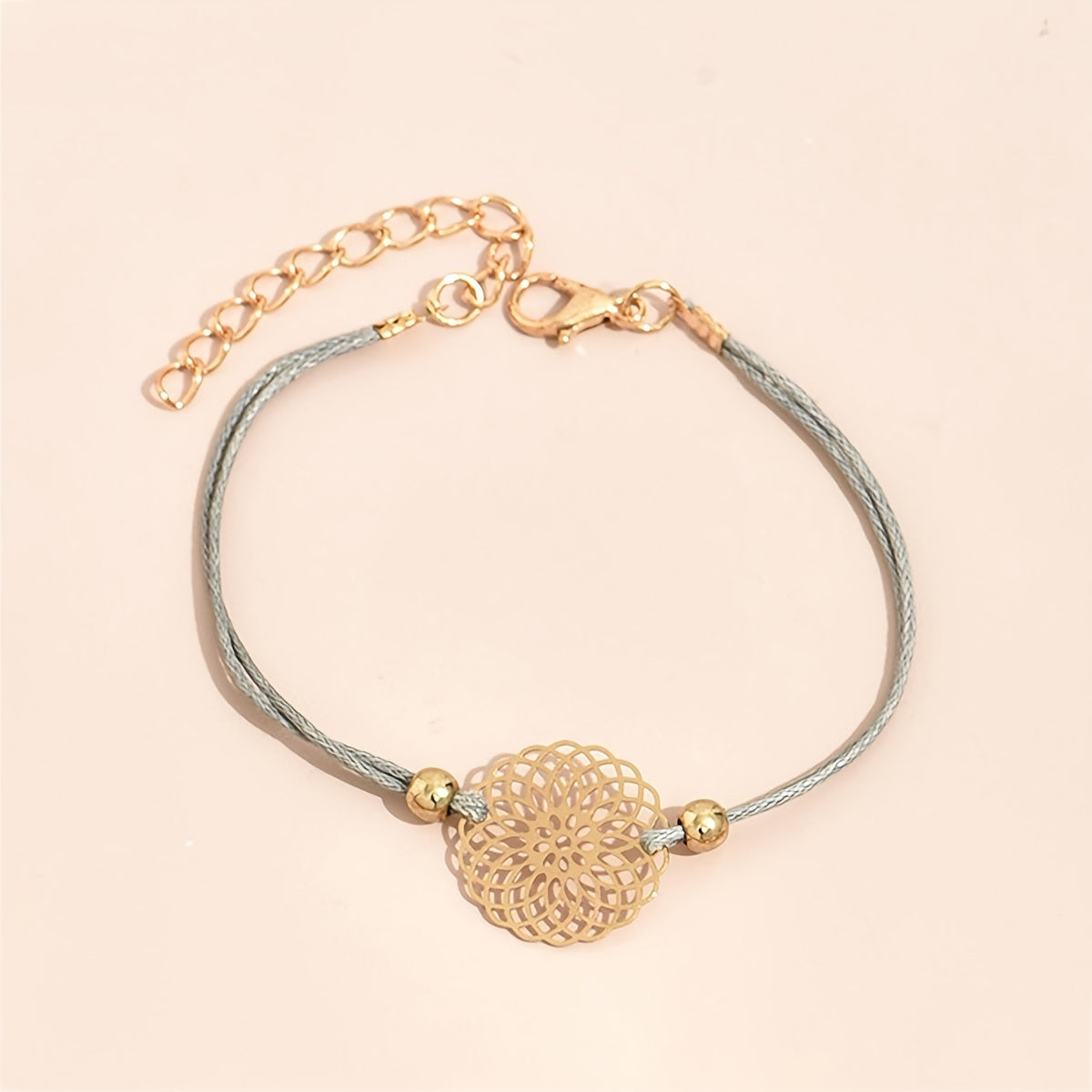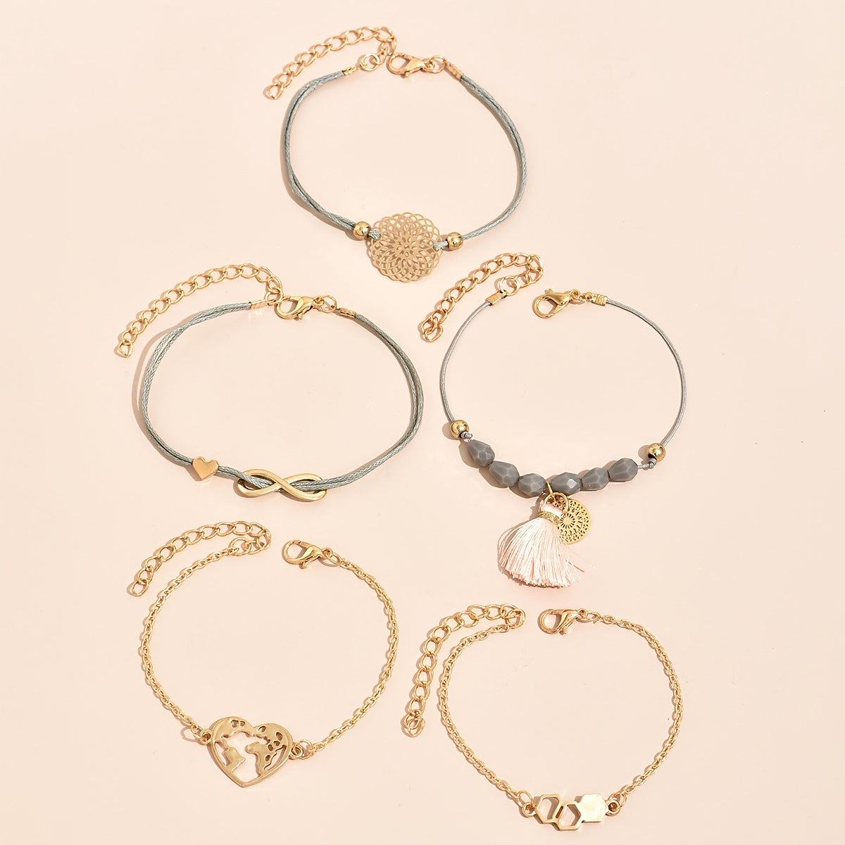 Enhance your style with these charming adjustable charm pendent stack bracelets featuring heart and flower-shaped crystals. The perfect accessory for any occasion.