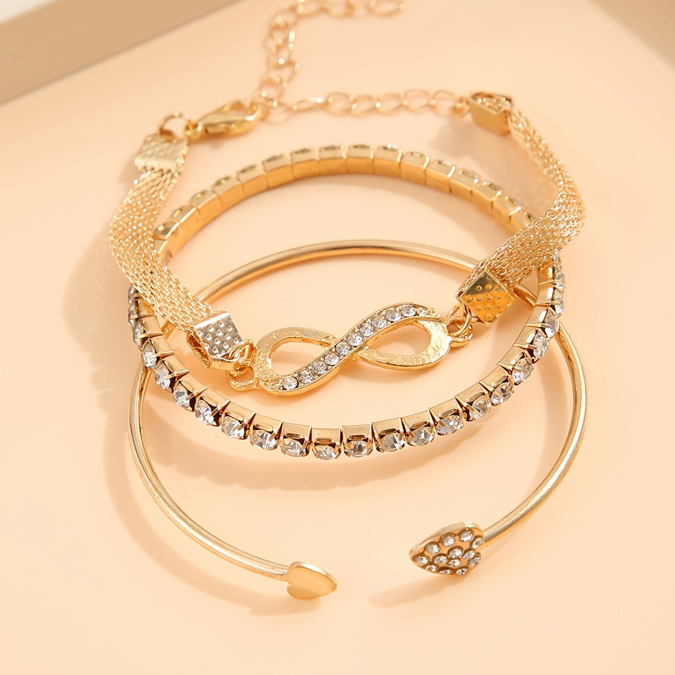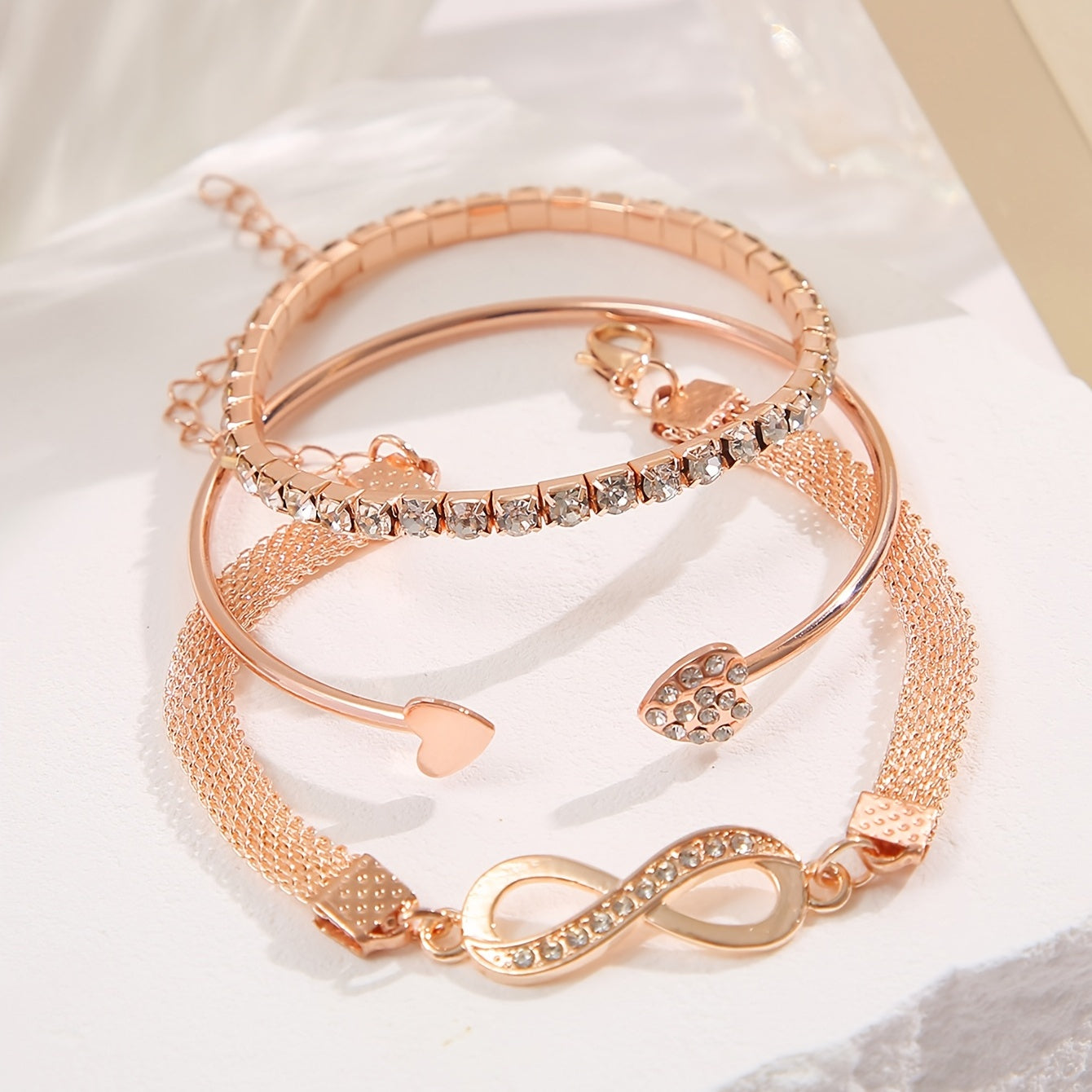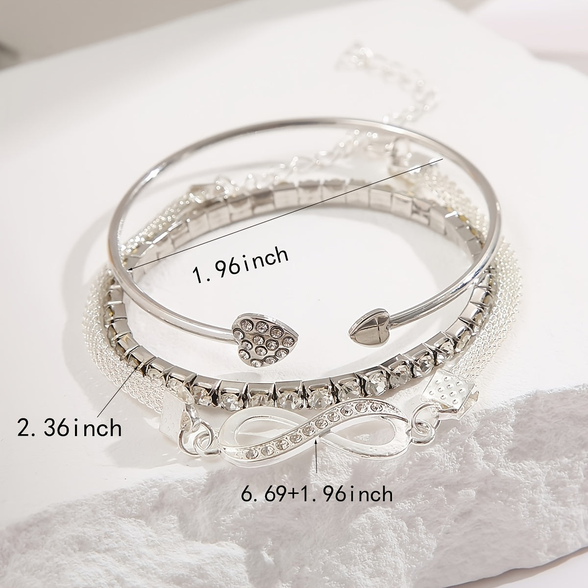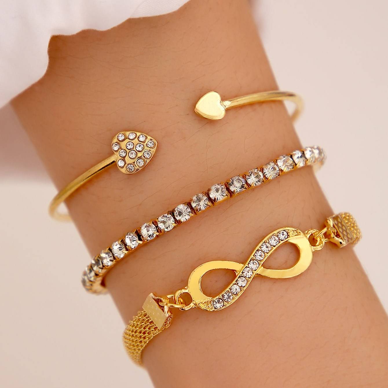 This bracelet kit includes 3 pieces of adjustable zircon bracelets made of zinc alloy. Perfect for women and girls who love elegant hand jewelry.