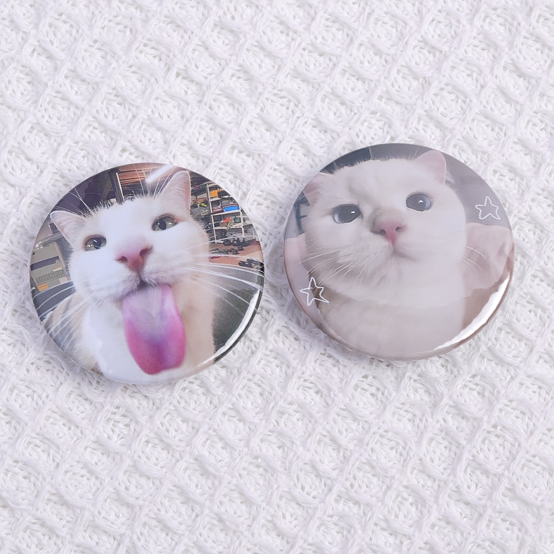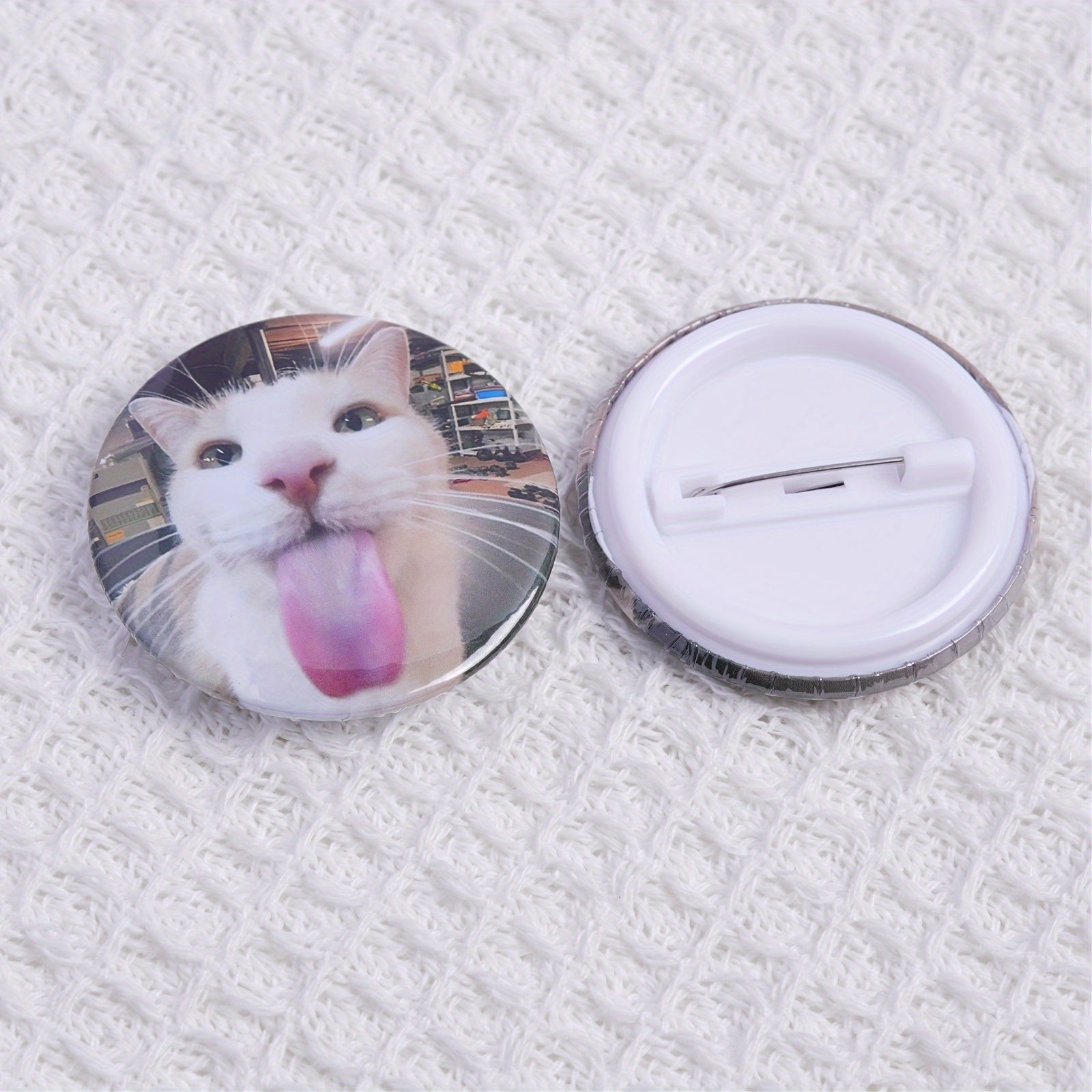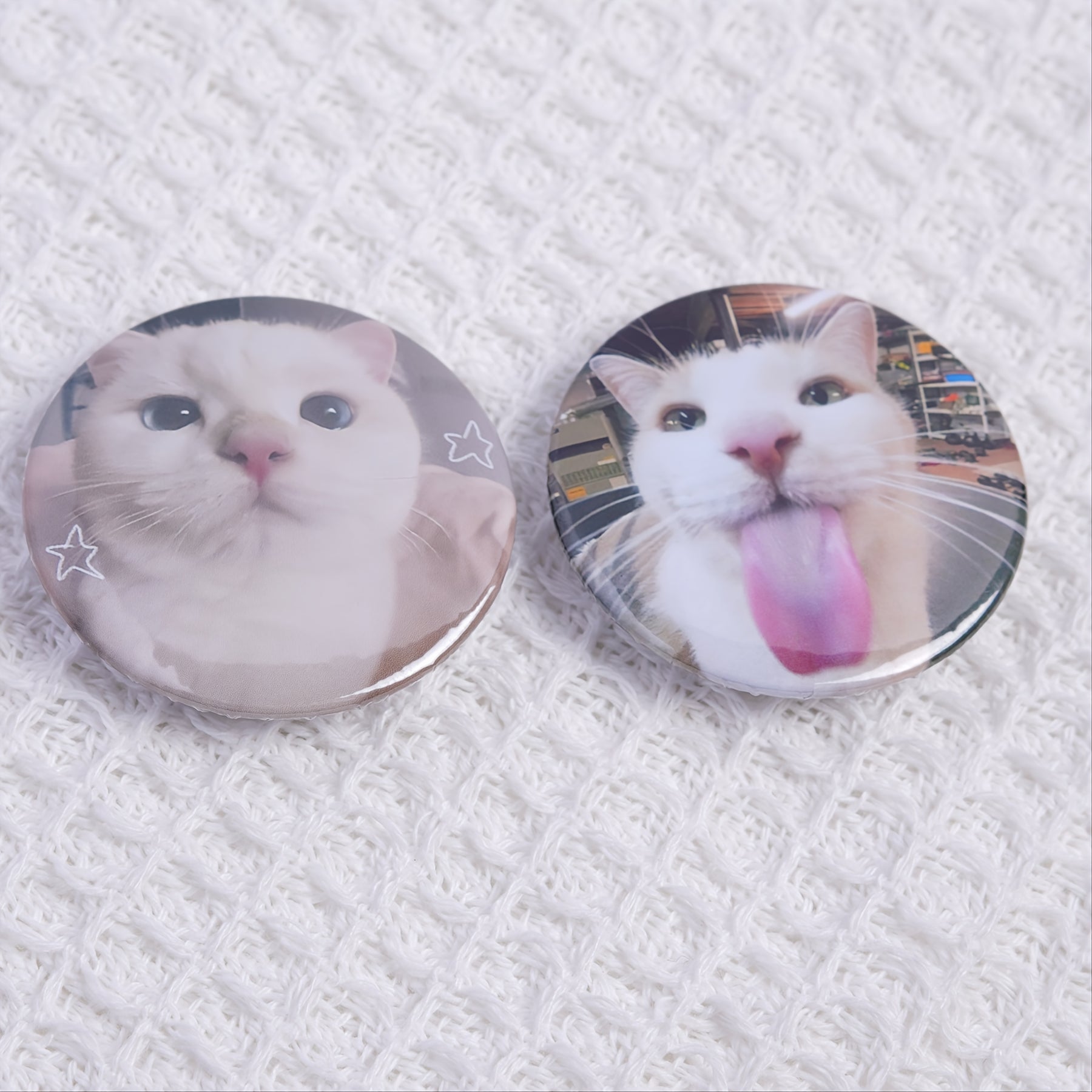 These 2pcs cute cat licking face pins feature a playful kitten with a pink tongue. Perfect for adding to bags, clothing, and accessories. Ideal gift for cat lovers!