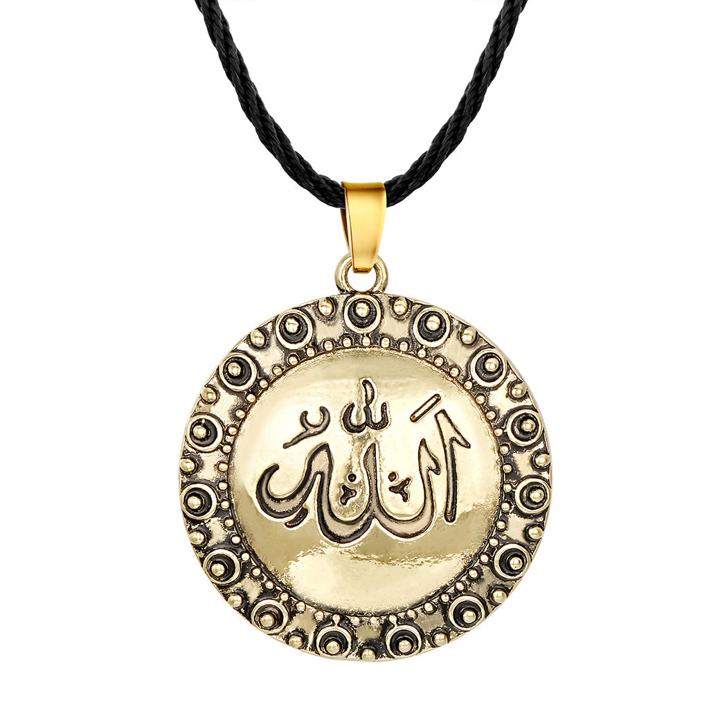 This stunning bronze Gods name Arabic necklace is perfect for men. It is a unique Islamic jewelry piece that makes a statement. Ideal as a gift for Muslim men.