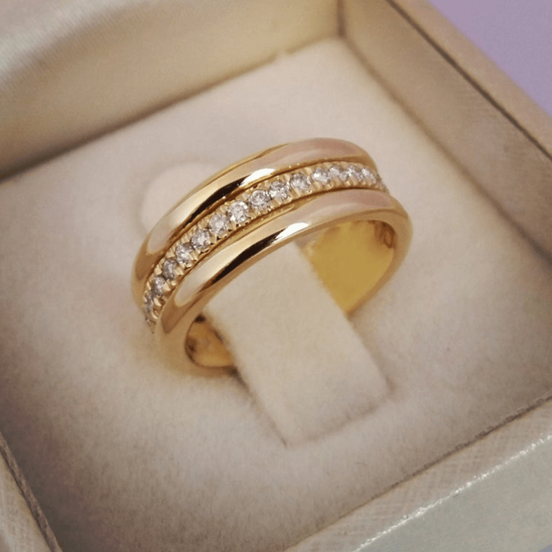 This stunning artificial diamond couple ring features a beautiful electroplated finish and an elegant design that symbolizes love and commitment.
