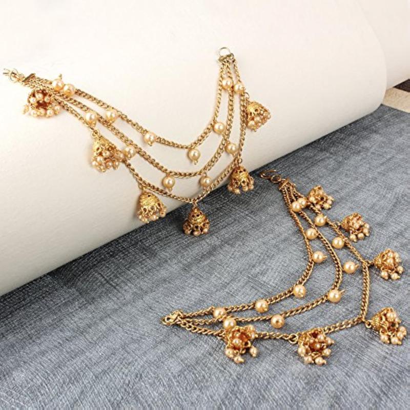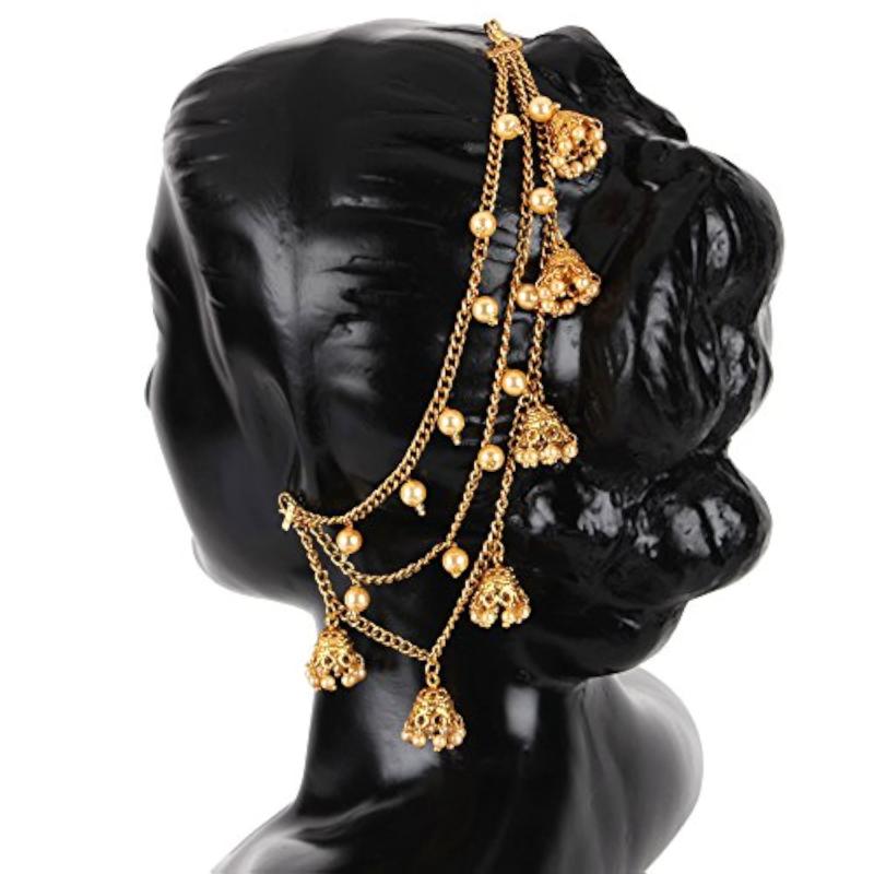 Stylish and fancy hair accessories with plated Bahubali pearl chain featuring traditional jhumki earrings for women and girls.