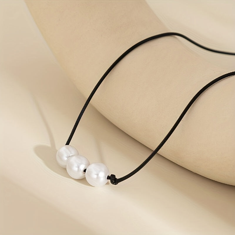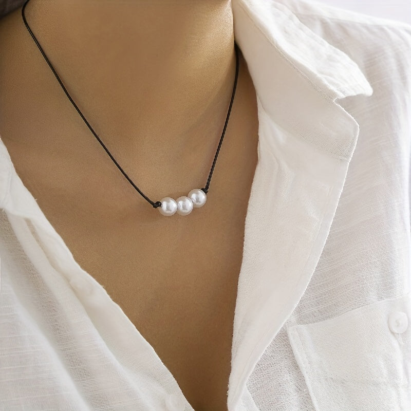 Elegant baroque style necklace with faux pearls on an adjustable rope. Perfect for adding a touch of delicacy to your neck jewelry collection.