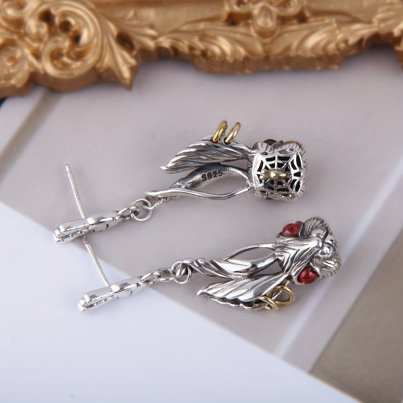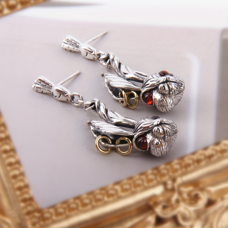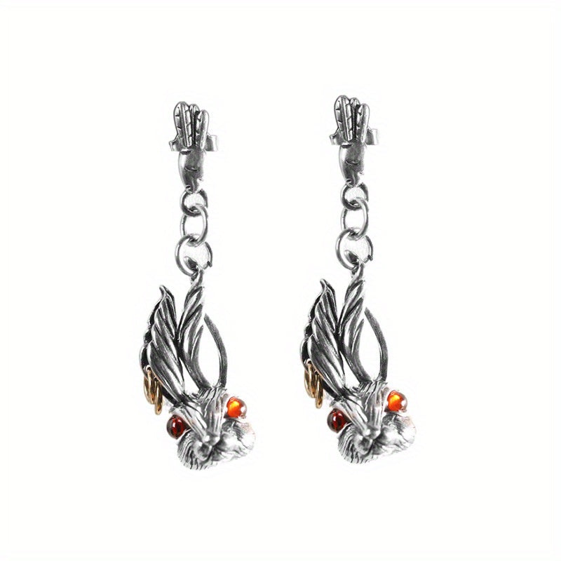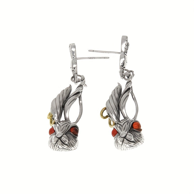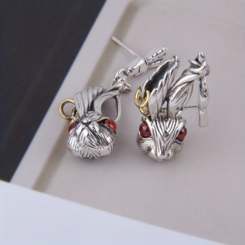 Retro style rabbit head earrings featuring big ears and red eyes, perfect for men or couples.