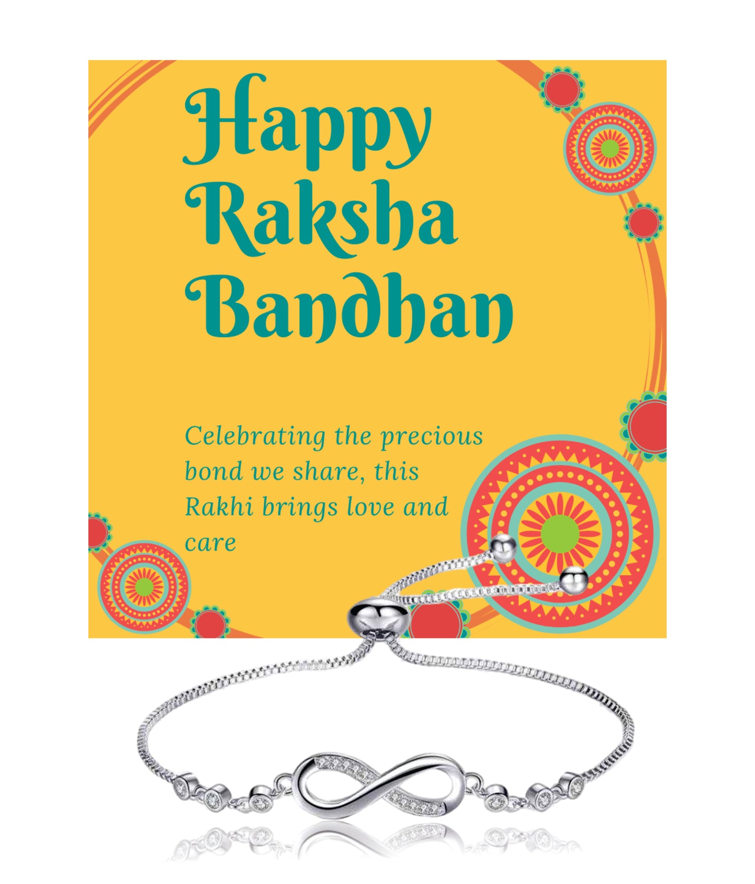 - Package includes 1 Raksha Bandhan Greeting Card and Infinity bracelet for sister.