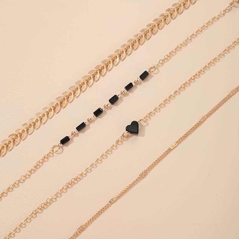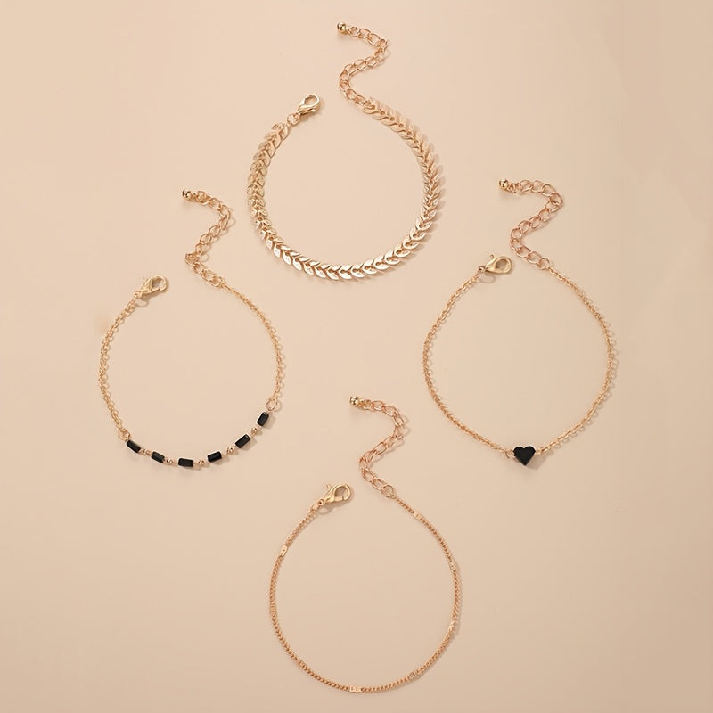This set includes leaf, heart, and geometrically patterned charm bracelets that are perfect for adding a bohemian touch to your outfits.
