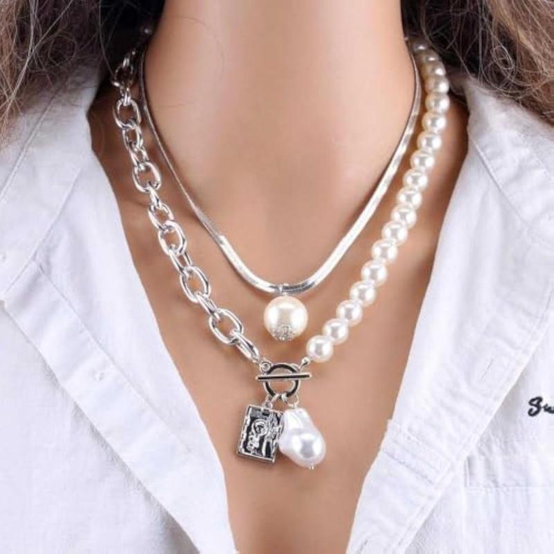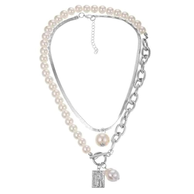 Elevate your style with this stunning double-layered choker necklace featuring bohemian crystals and pearls.