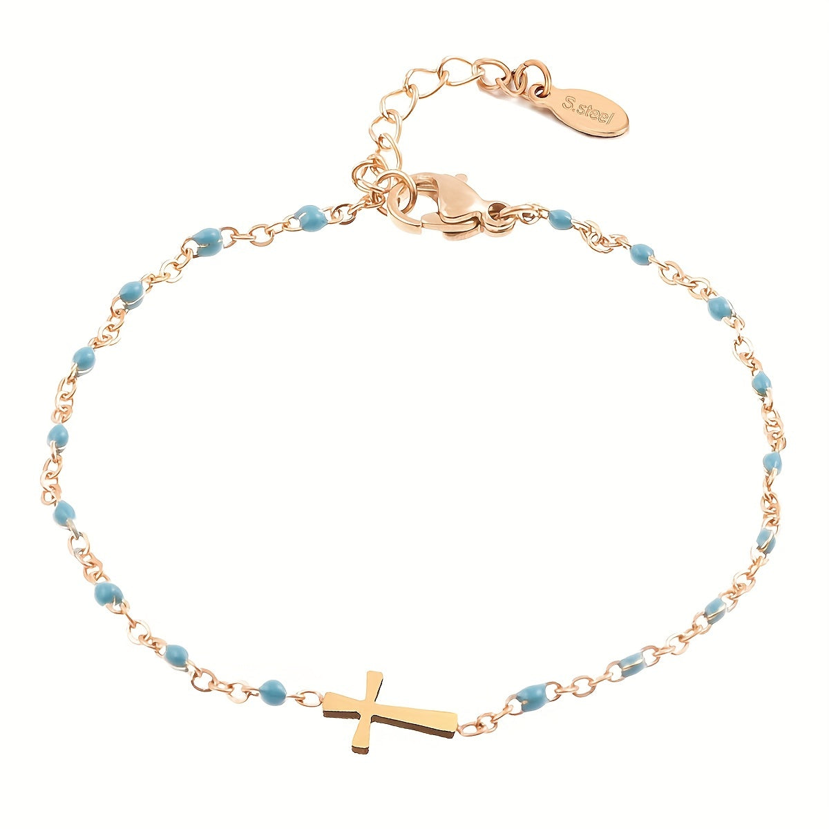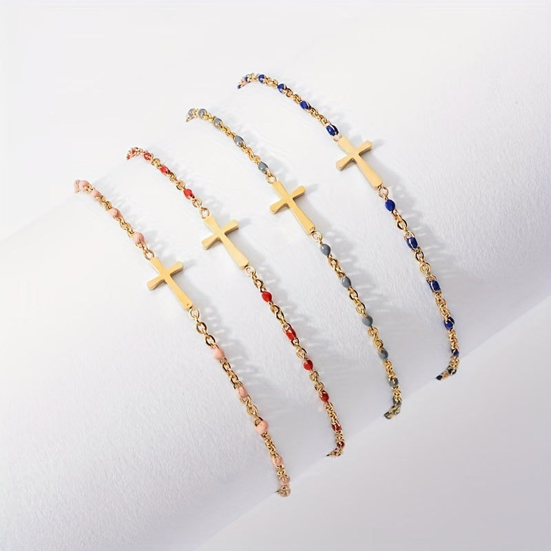This stylish Bohemian drip oil bead bracelet features a cross design, perfect as a gift for friends. Made of high-quality stainless steel.
