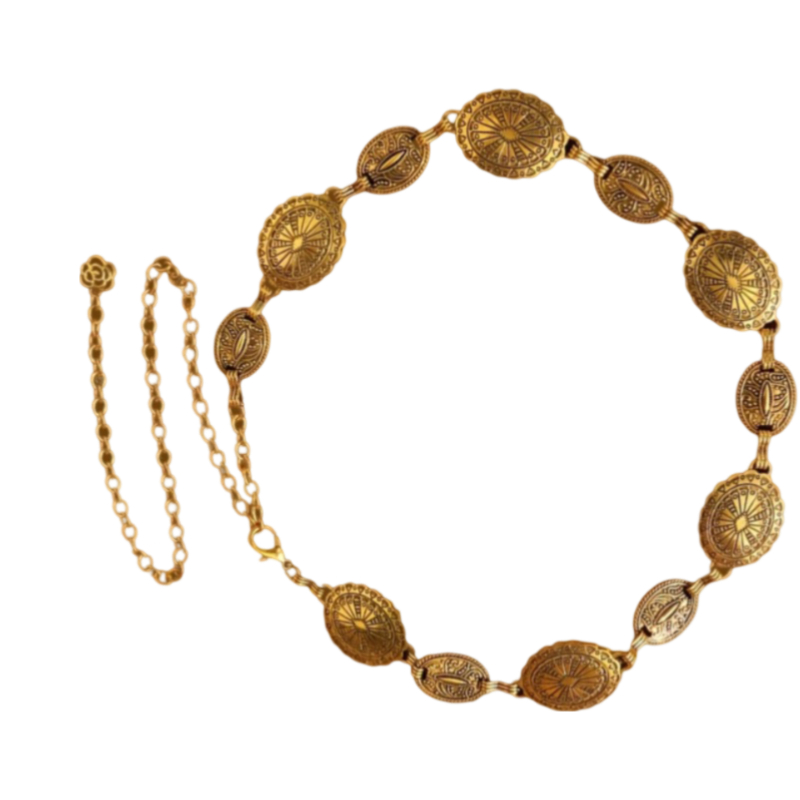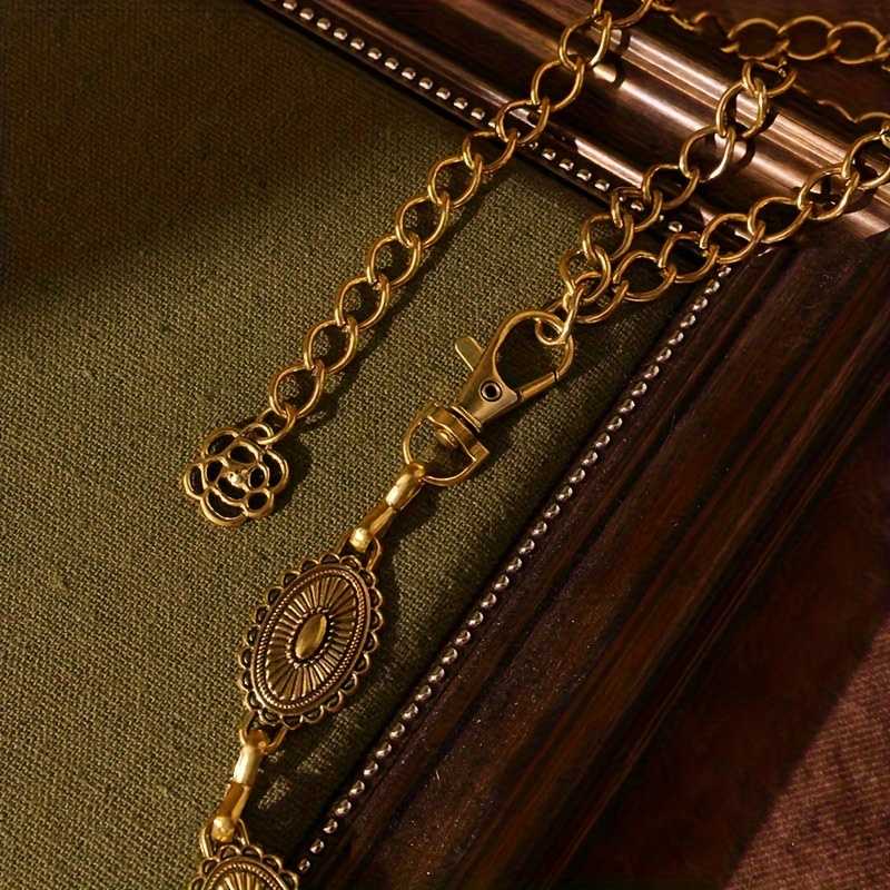 Boho Carved Metal Waistband Vintage Gold Adjustable Chain Belt for Women
