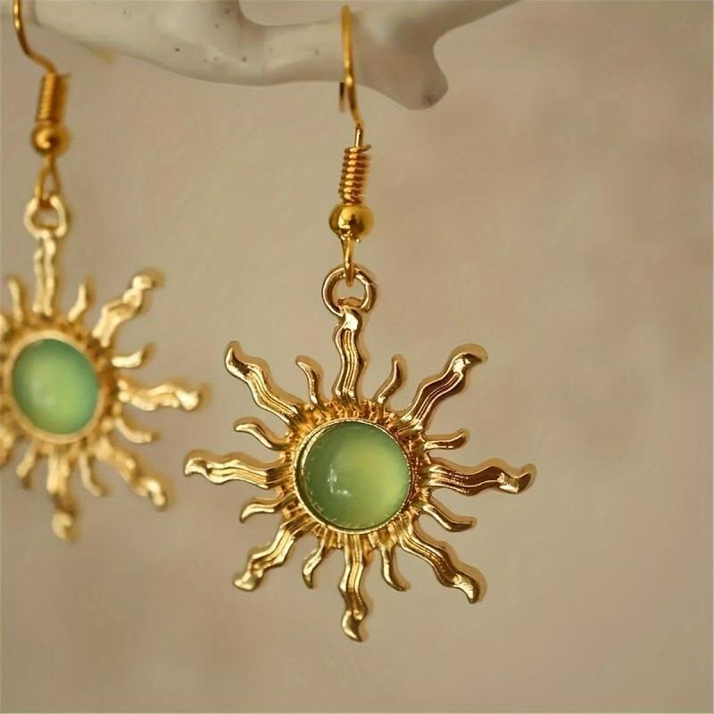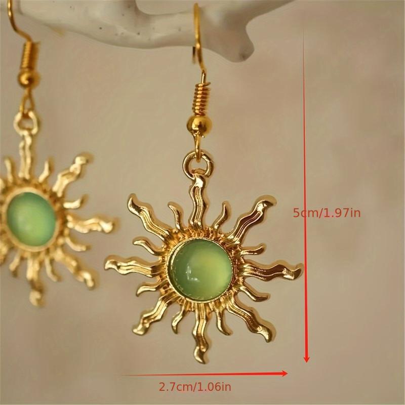 These boho green sun dangle earrings are made of zinc alloy with 316L stainless steel posts. They are great for adding a touch of style to your casual attire.