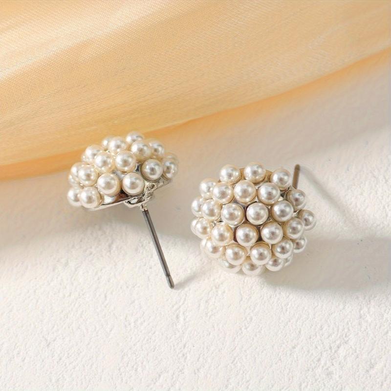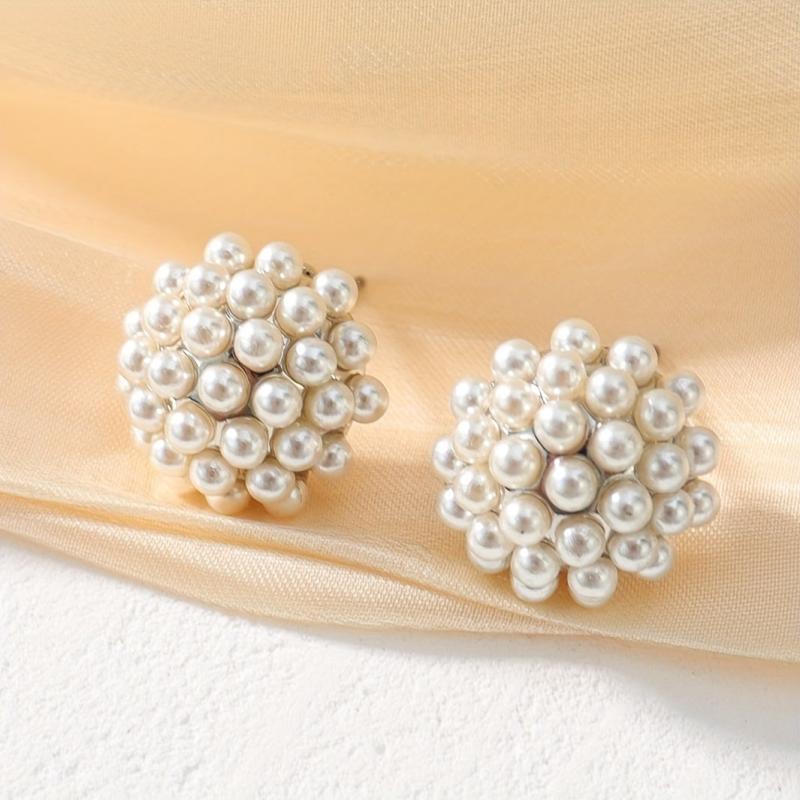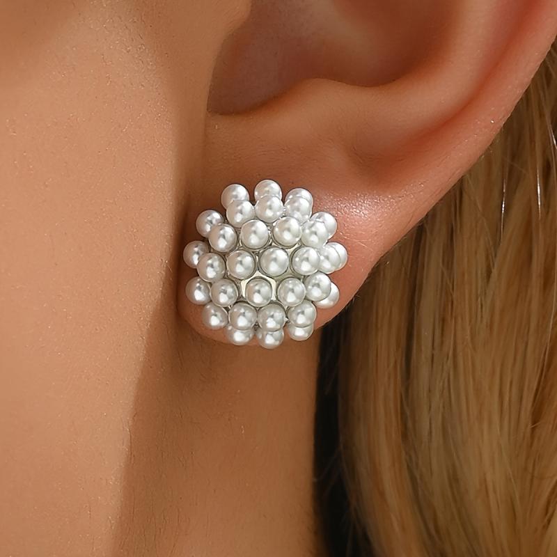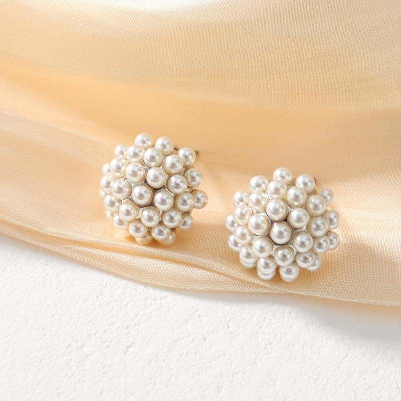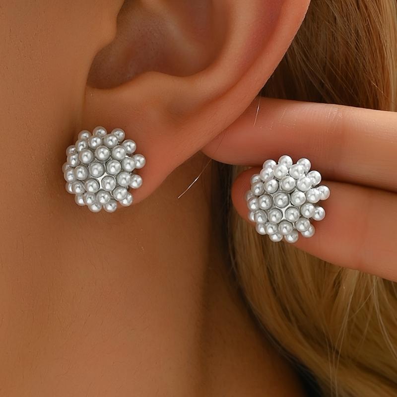 Elegant and versatile faux pearl stud earrings suitable for daily wear and parties. Add a touch of boho chic to your outfits.