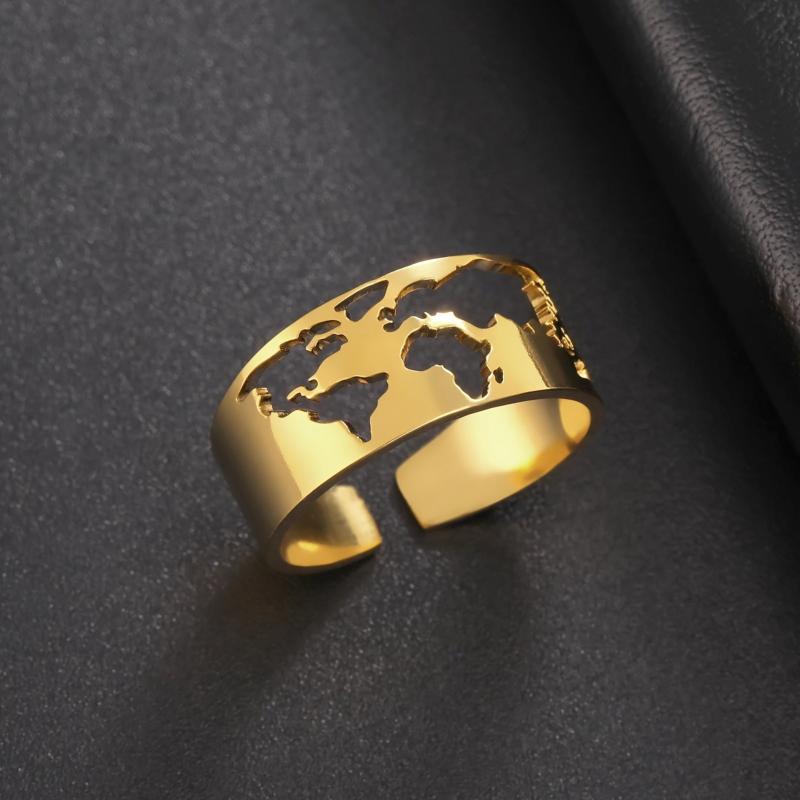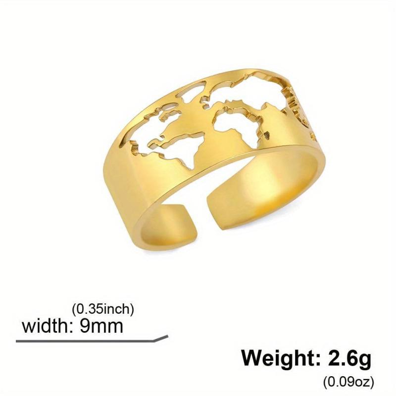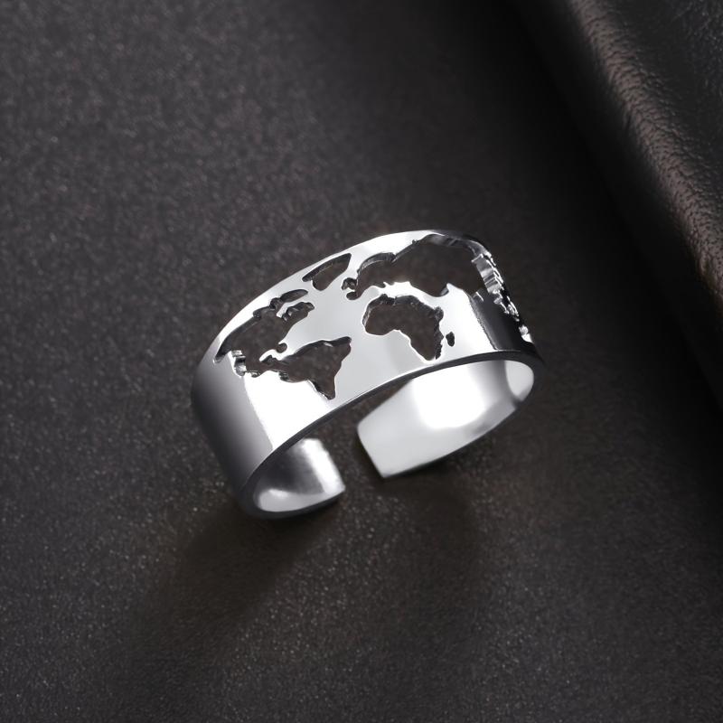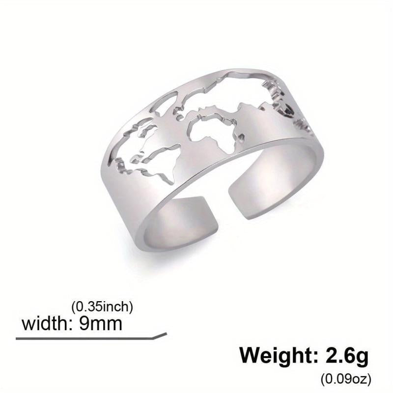 This adjustable ring with a world map design is perfect for travel-themed parties or as a unique gift. Made of high-quality stainless steel.
