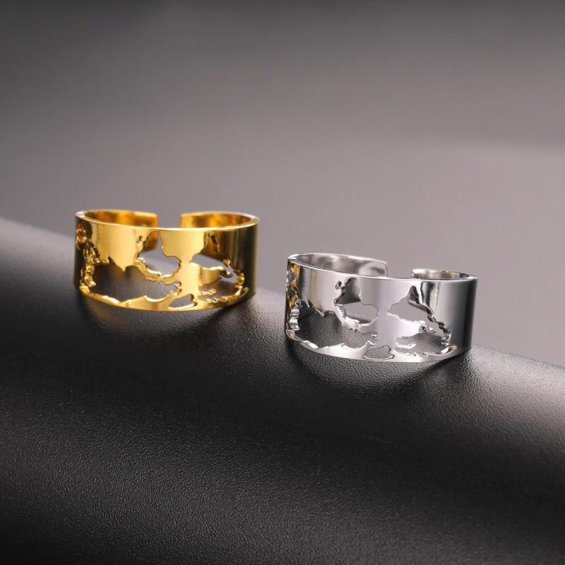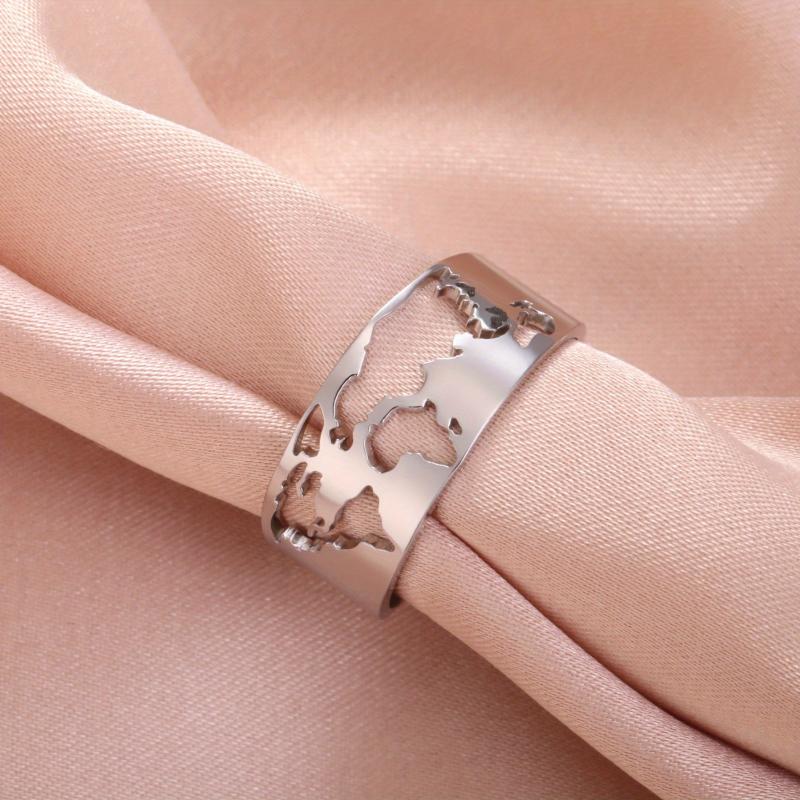 Boho Punk Style Stainless Steel World Map Hollow Out Ring