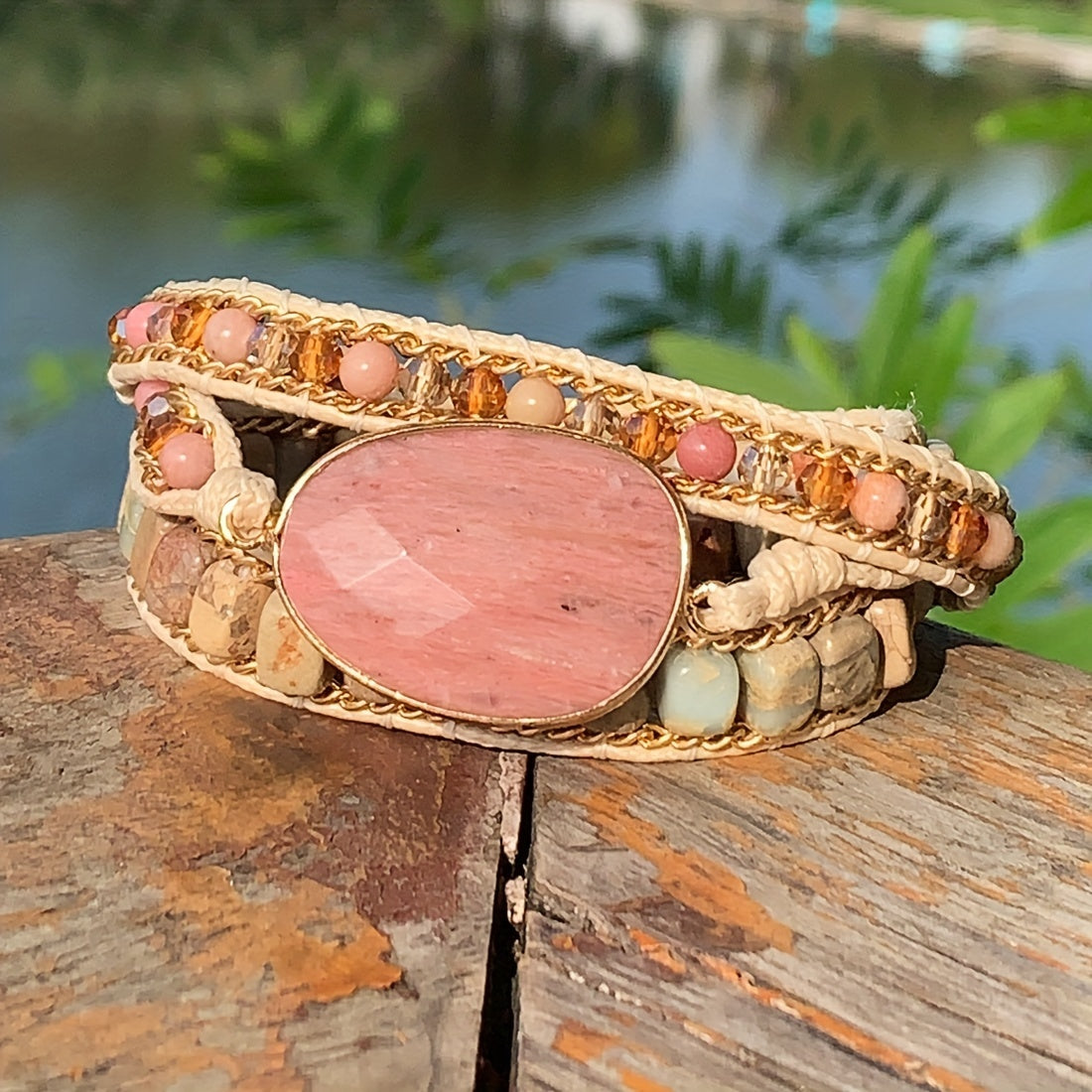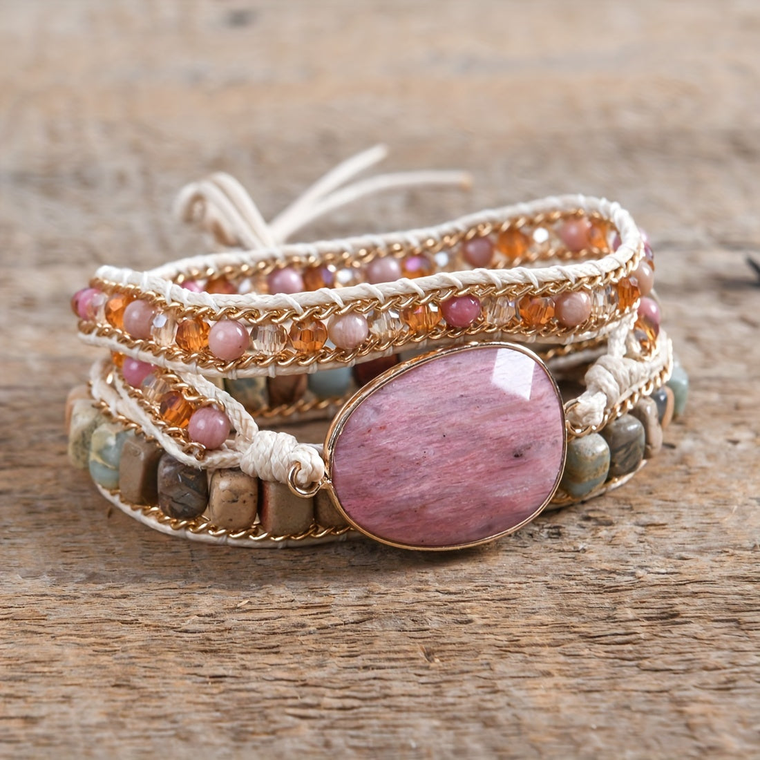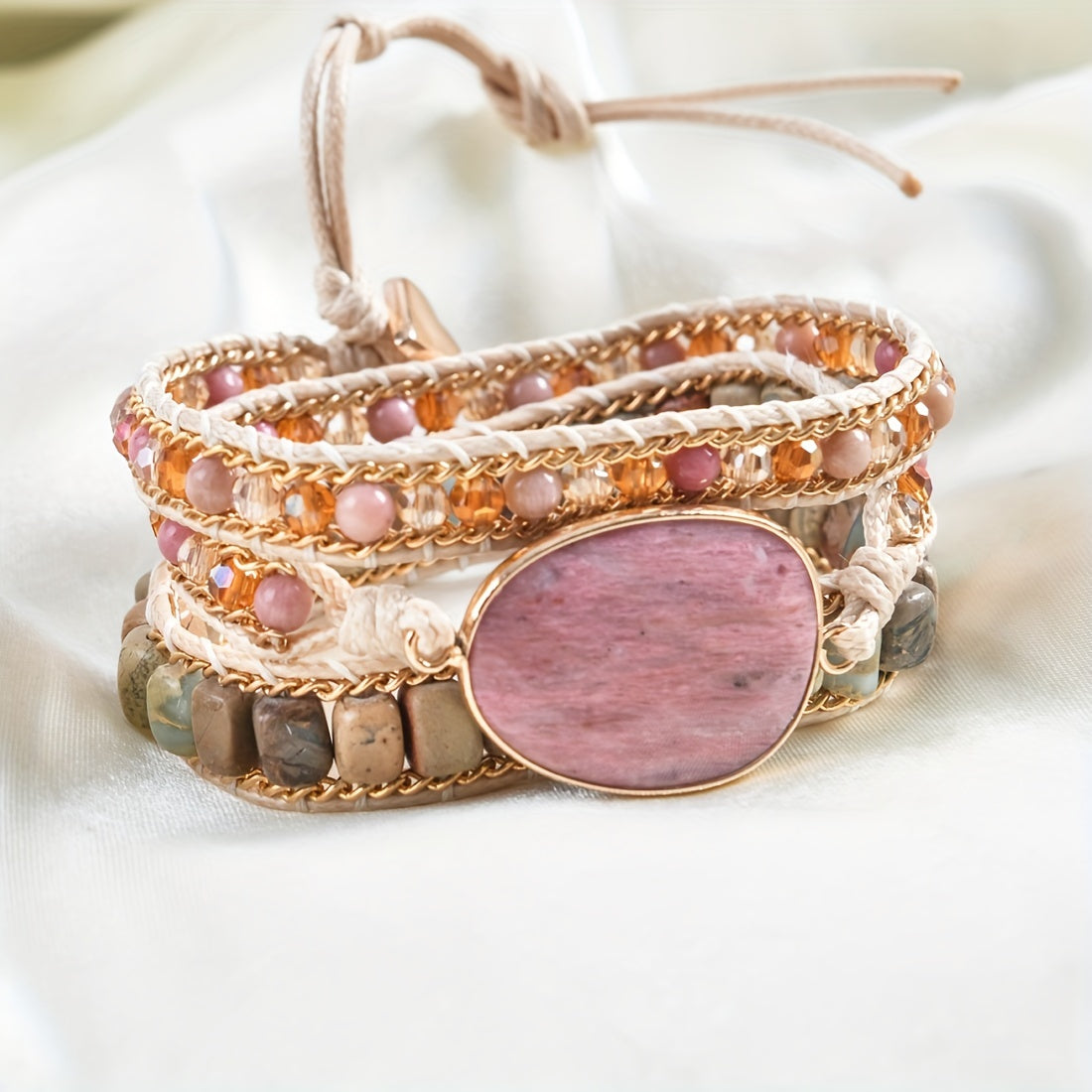 Add a touch of bohemian charm to your look with this handwoven braided wrap bracelet. Perfect for women who love unique hand jewelry accessories.