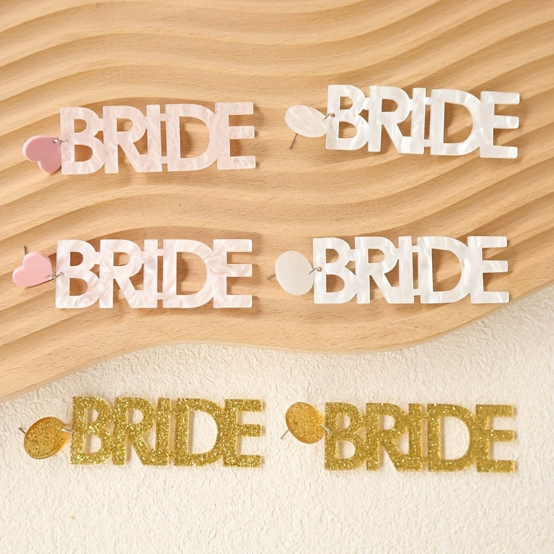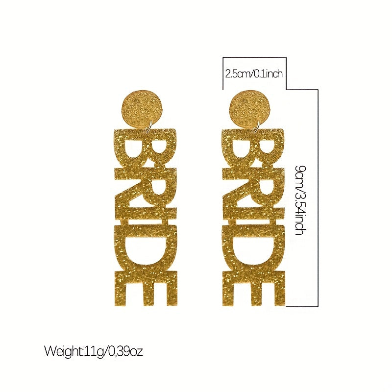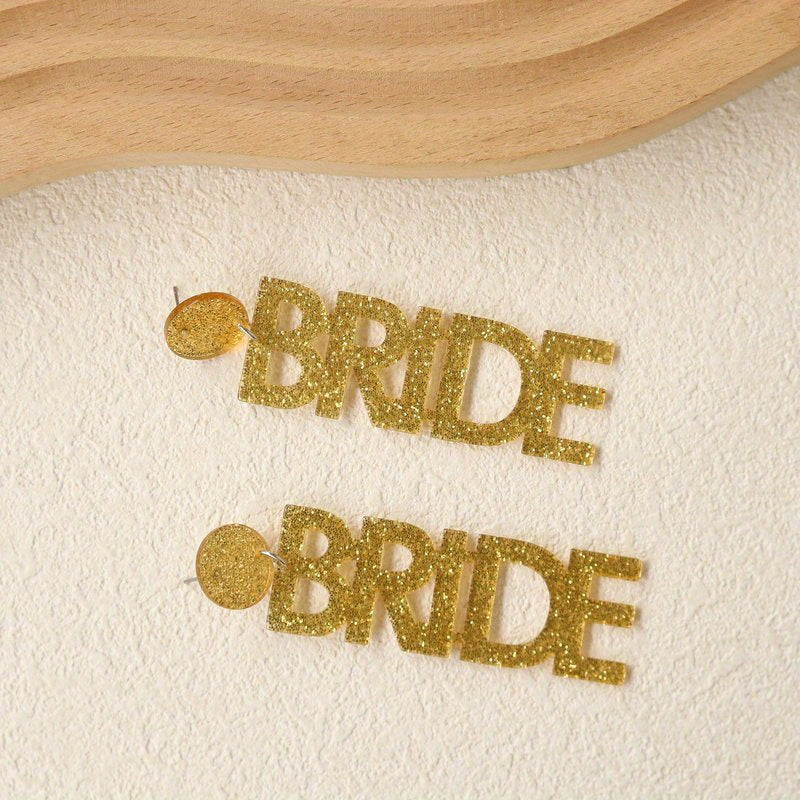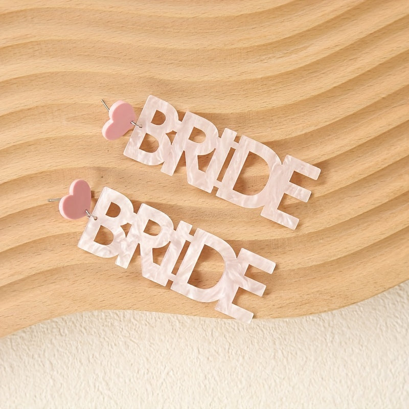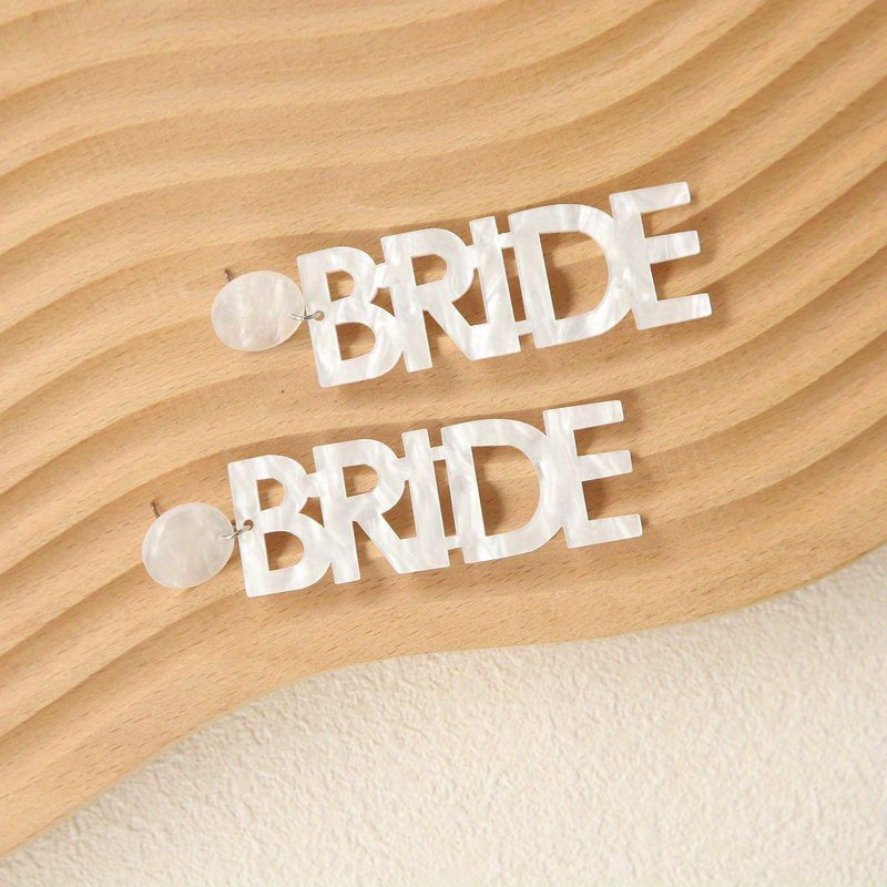 These elegant BRIDE letter drop earrings are perfect for brides looking for unique bridal ear jewelry. They feature a dangle design that adds a touch of sophistication to any wedding outfit.